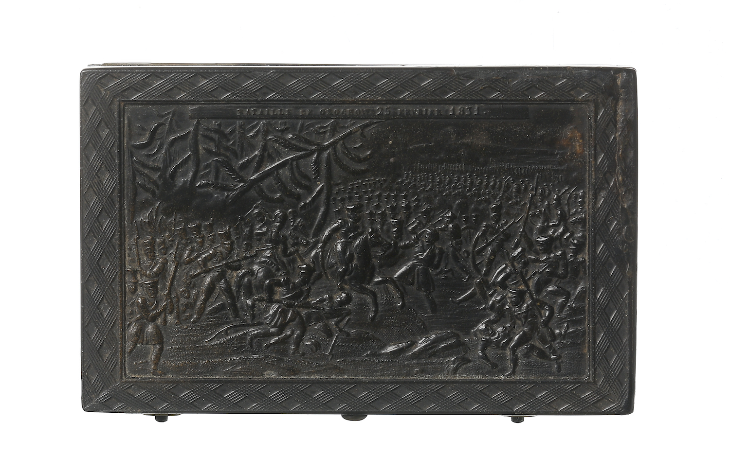 The lid decorated with a battle scene commemorating the battle of Grochów, 25th February 1831. The movement stamped 'H MG' and numbered 2251.