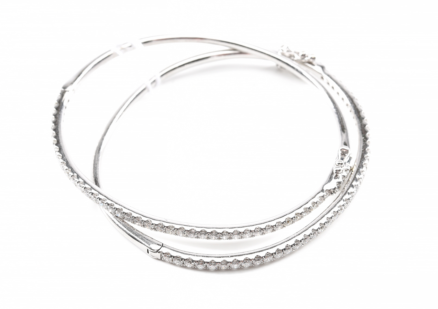 TWO CHILDREN'S DIAMOND SET BANGLES TOTALLING 3.20CTS, IN 18CT WHITE GOLD, INNER DIMENSIONS 50MM X 45MM, TOTAL WEIGHT 16.8GMS