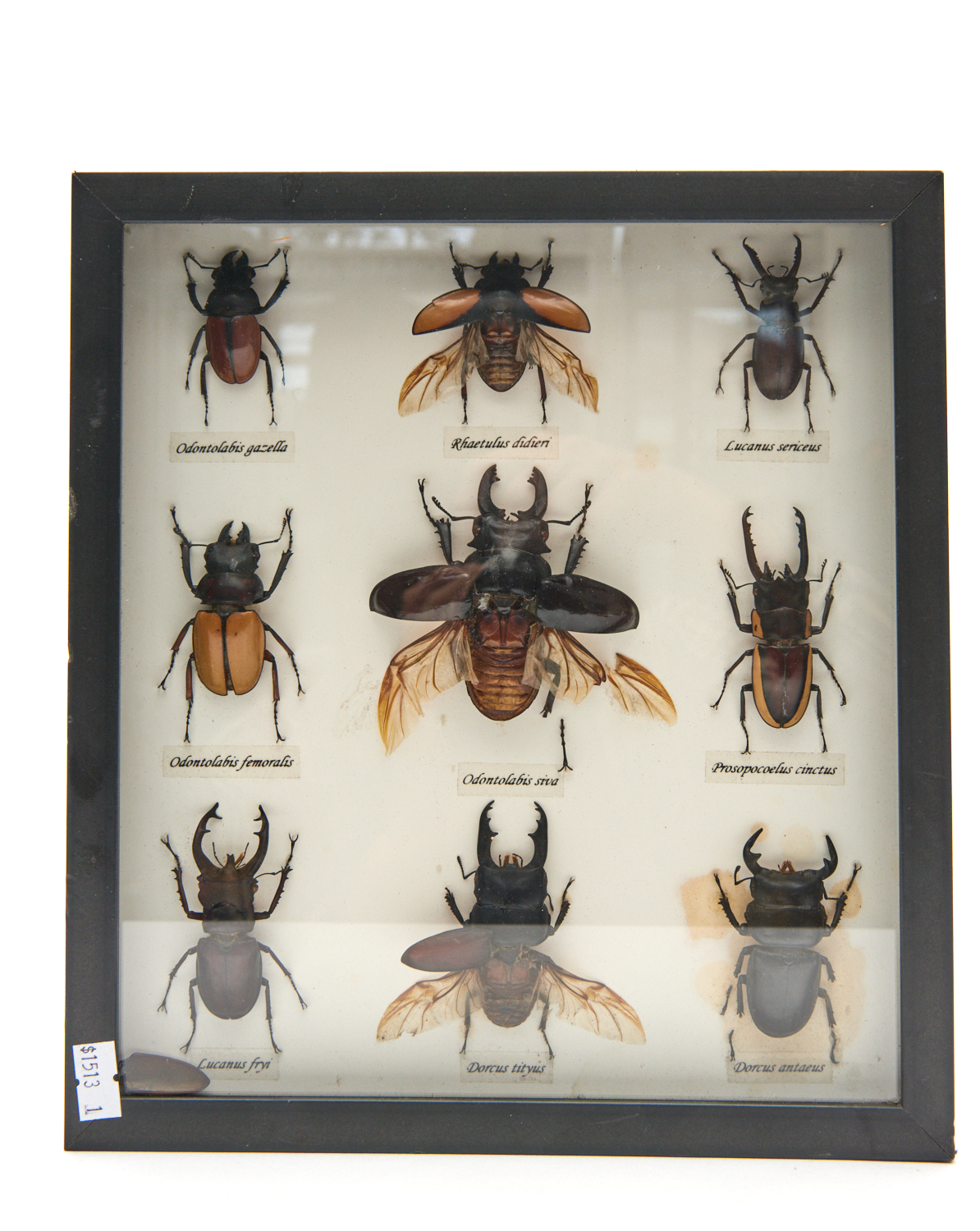 A BOX FRAMED COLLECTION OF BEETLE SPECIMENS
