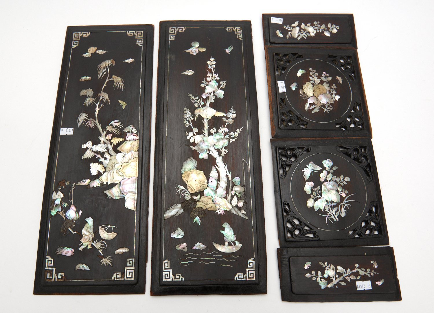 A COLLECTION OF MOTHER OF PEARL INLAID WOODEN PANELS