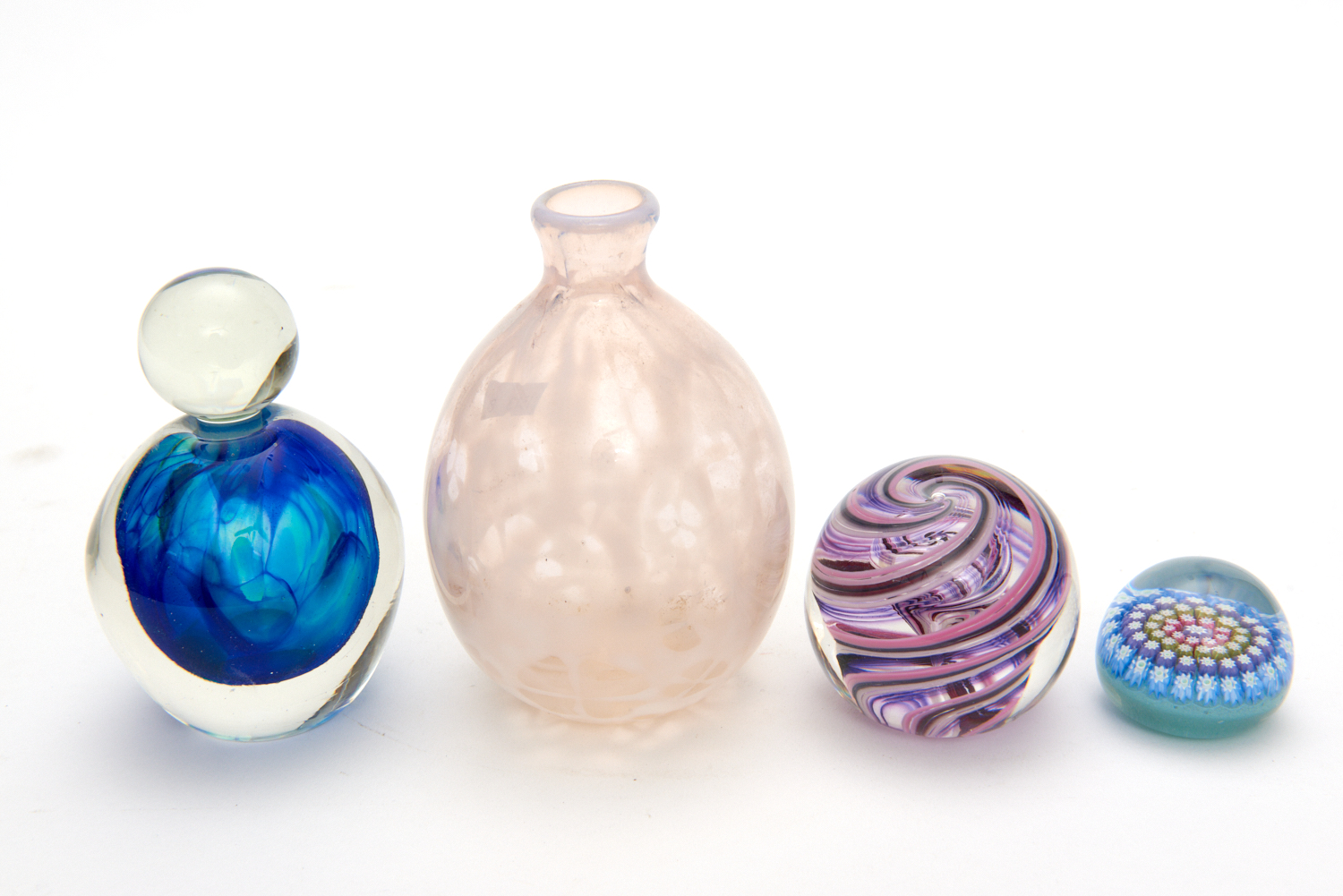 FOUR PIECES OF GLASS INCLUDING A PERTHSHIRE MILLEFIORI PAPERWEIGHT