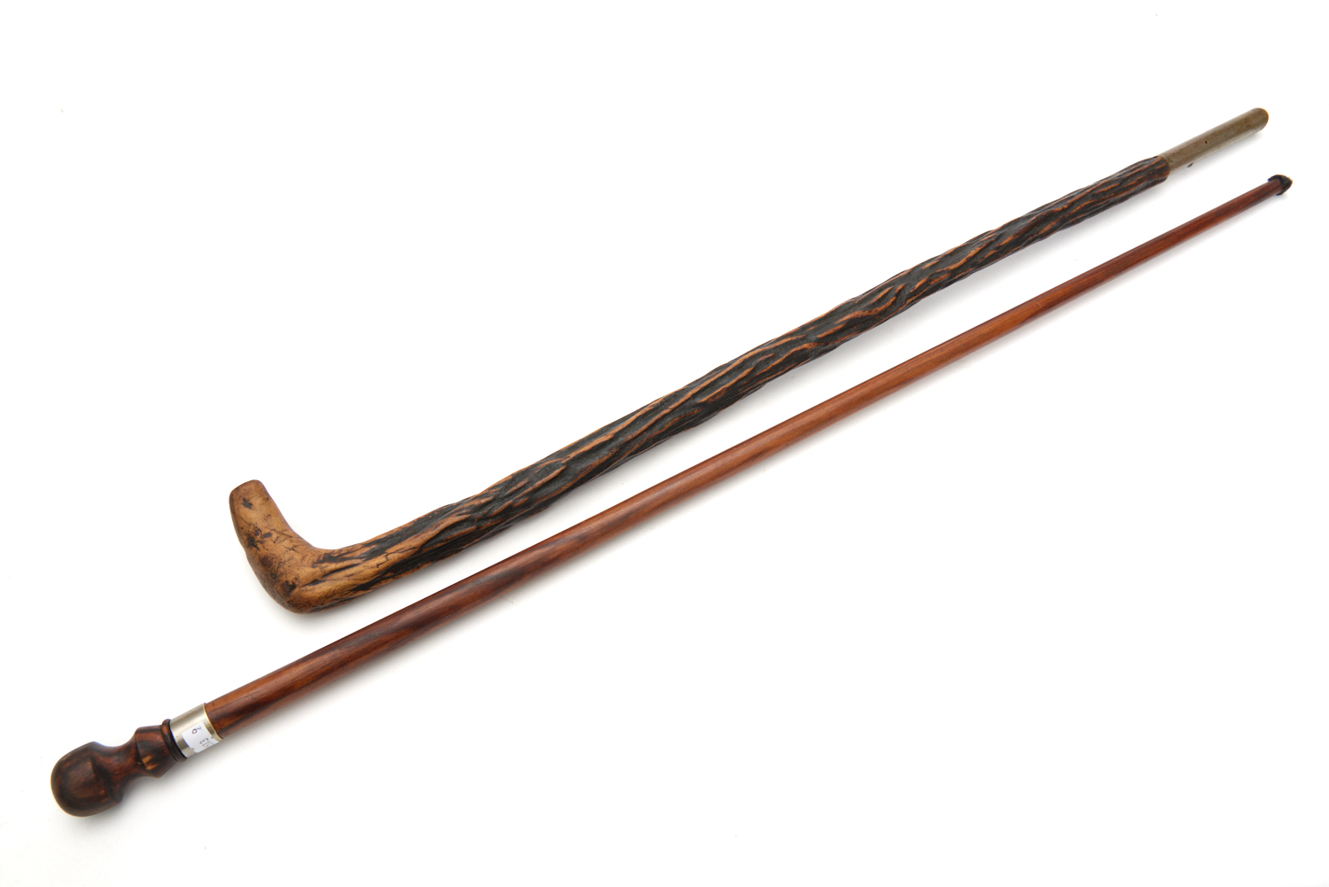 TWO GOOD HARDWOOD WALKING STICKS TALLEST H.91CM