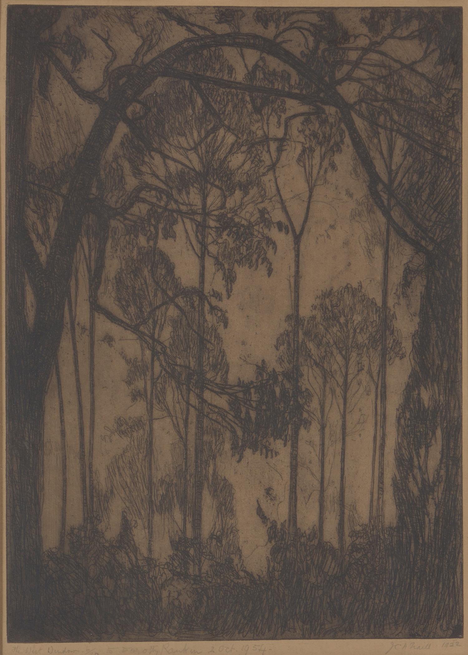 This work could possibly be a view from the artist's studio at Harkaway, Victoria.