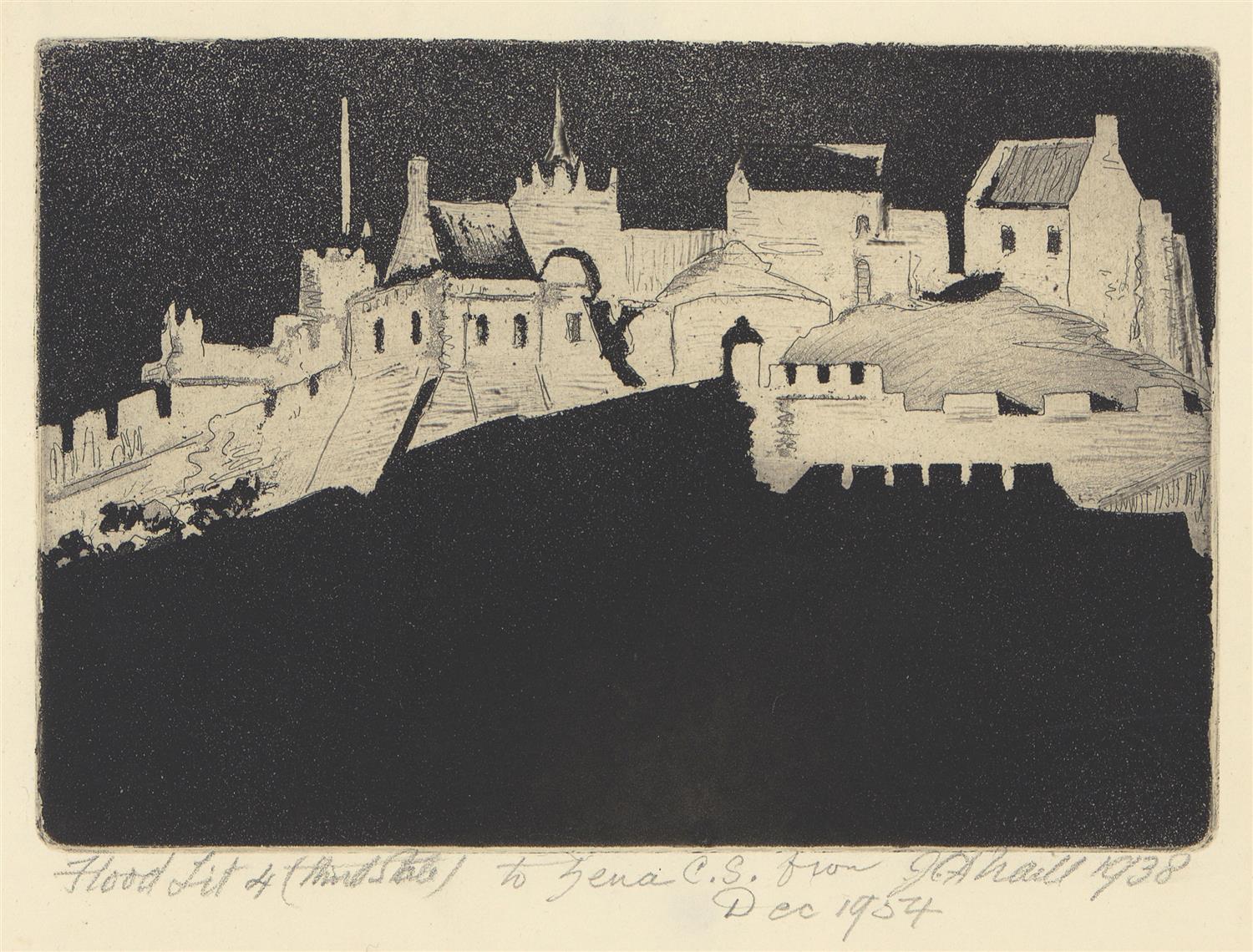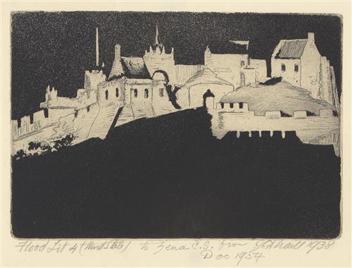 This artwork is in fair condition. The print itself is in good condition and true to age. The paper has handling marks and creases throughout. There is a small brown stain at the upper right above the print itself.