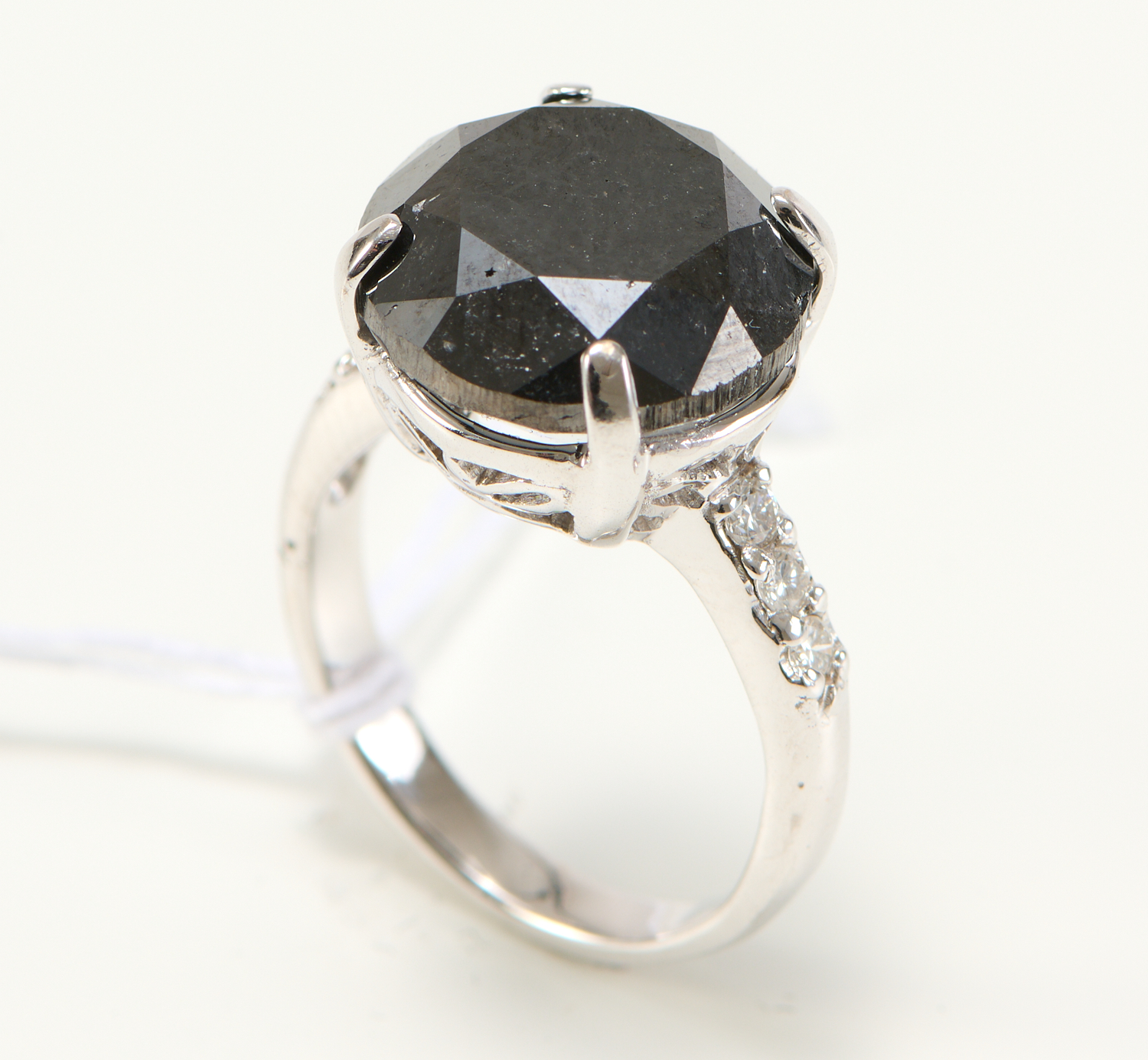 A DIAMOND SET RING IN 18CT WHITE GOLD, THE CENTRAL DIAMOND WEIGHING APPROXIMATELY 1.30CTS, THE SURROUNDING DIAMONDS WEIGHING APPROXI...