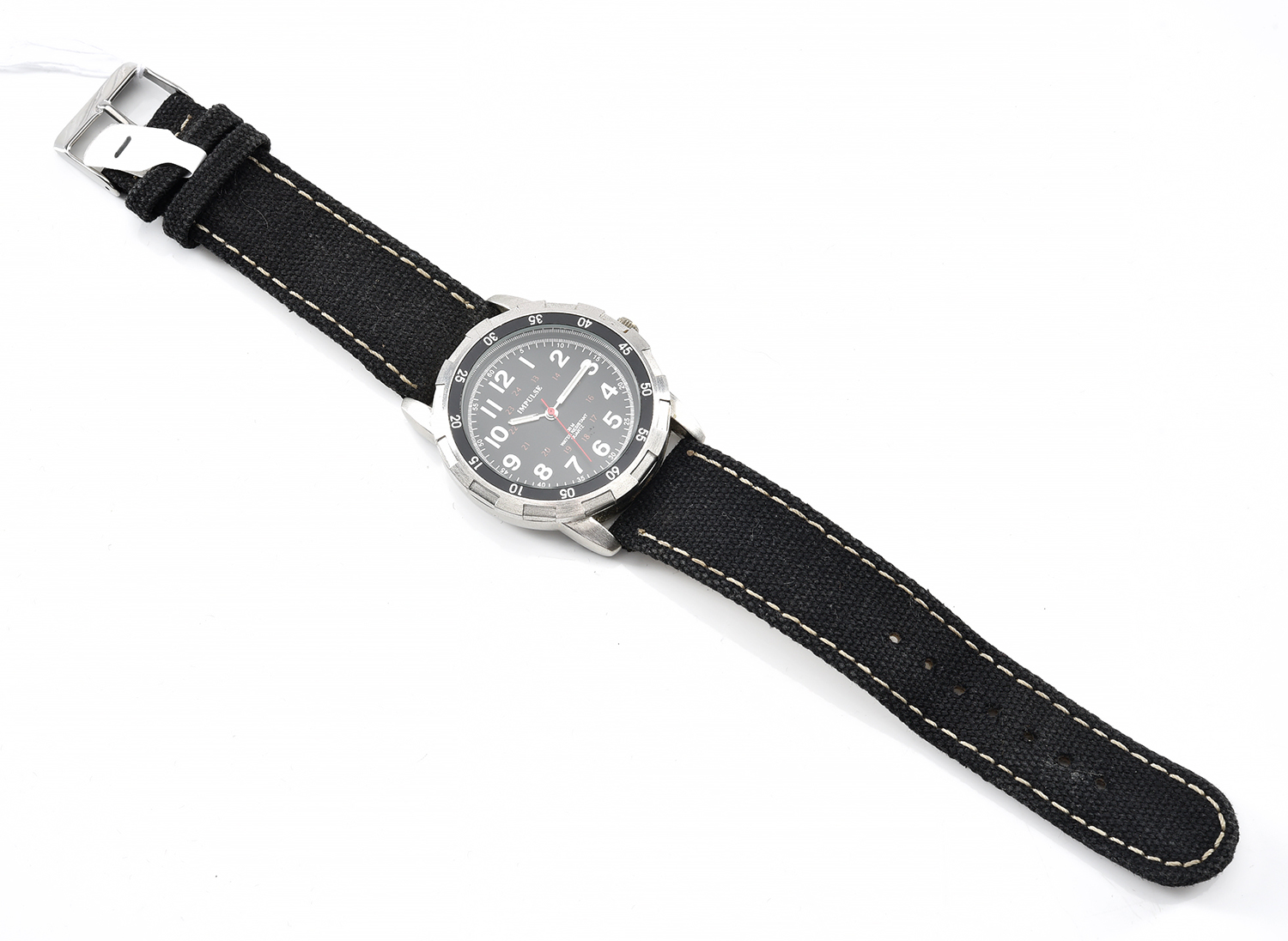 AN IMPULSE WRISTWATCH, QUARTZ MOVEMENT, STAINLESS STEEL CASE, TO BLACK FABRIC BANDS
