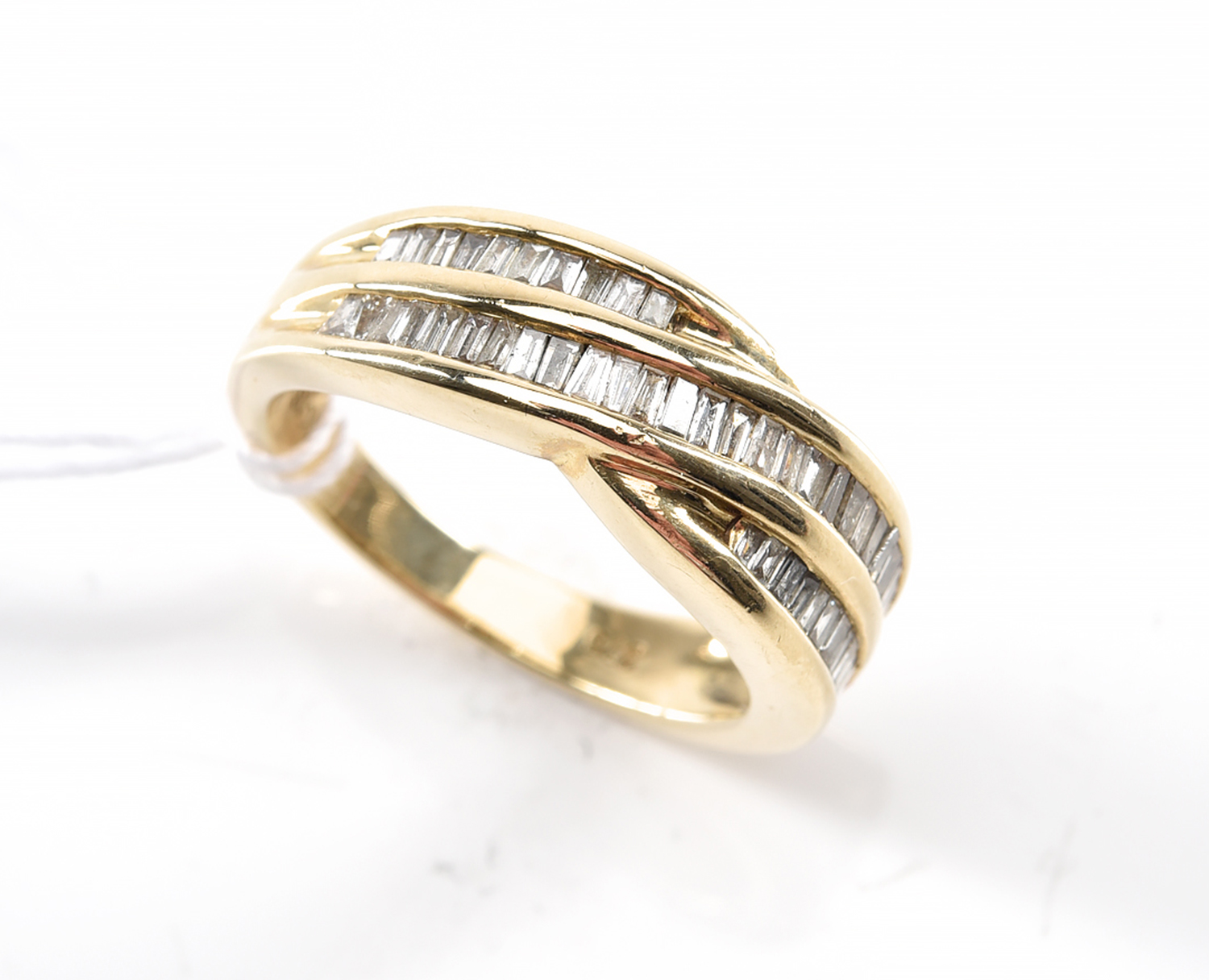 A DIAMOND DRESS RING SET WITH BAGUETTE CUT DIAMONDS, IN 9CT GOLD, SIZE M, 4.5GMS