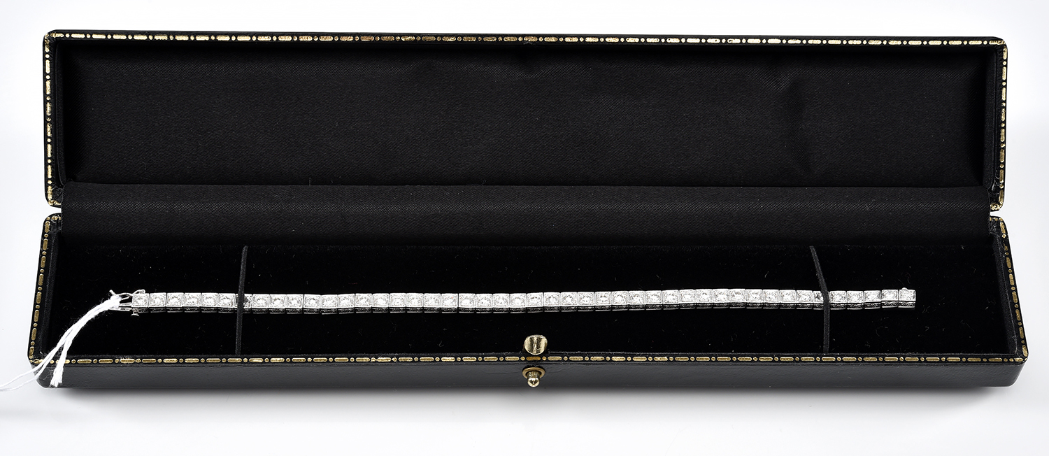 AN ART DECO STYLE DIAMOND LINE BRACELET TOTALLING APPROXIMATELY 4.00CTS IN 18CT WHITE GOLD, TOTAL LENGTH 172MM, 17GMS