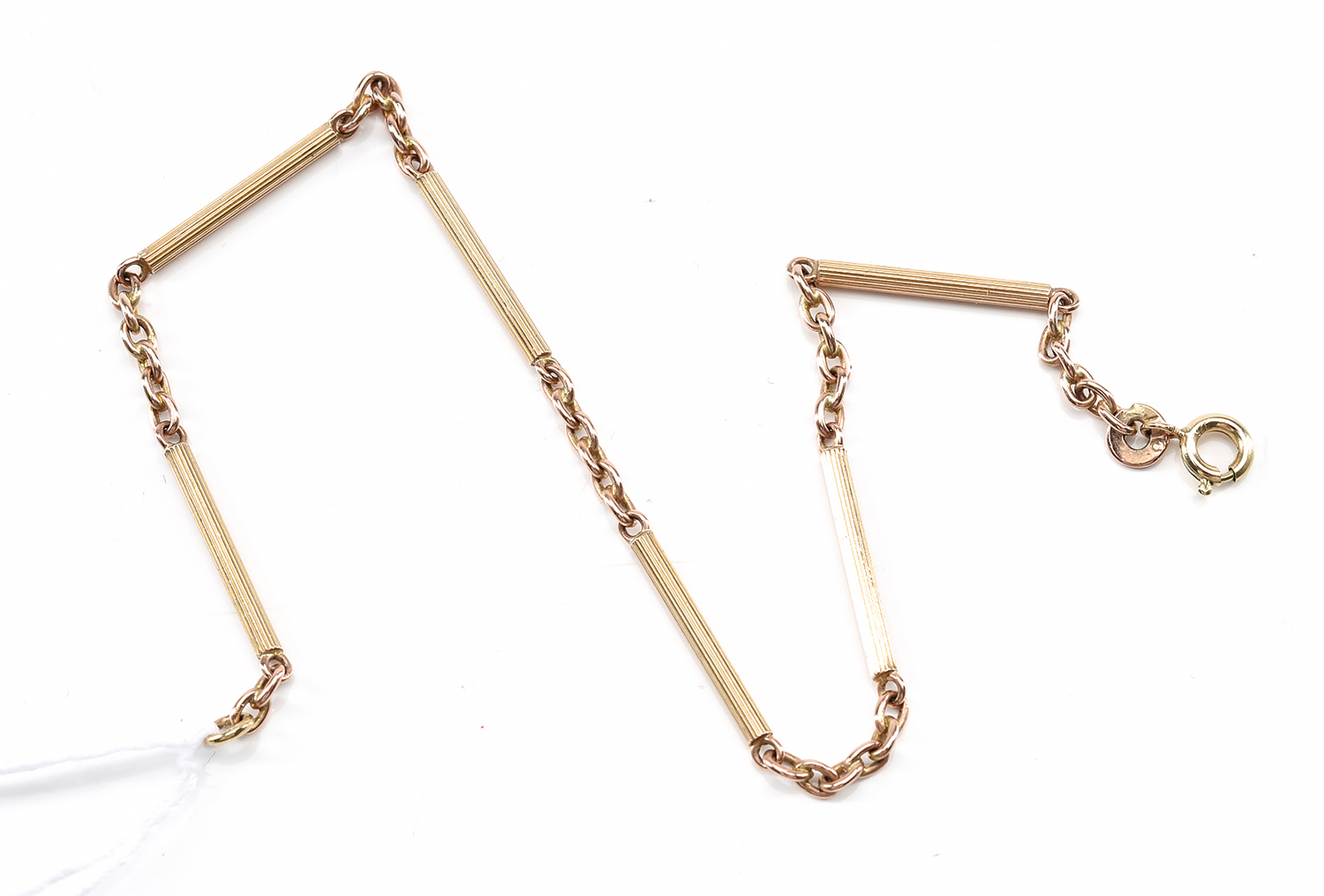A VINTAGE BRACELET, WITH BAR AND CURBLINK IN 9CT GOLD, TOTAL LENGTH 210MM, 5.1GMS