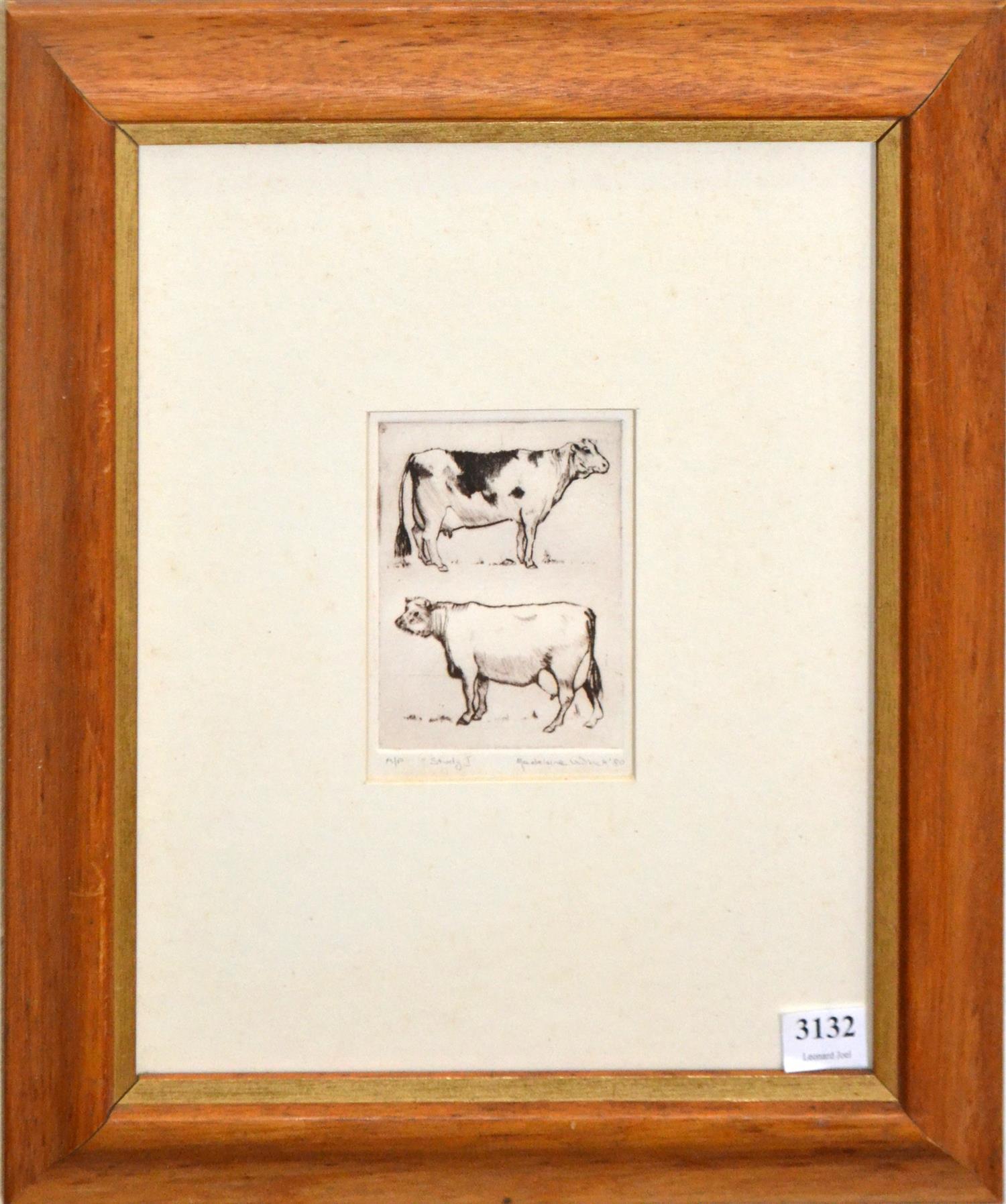 MADELEINE WINCH, FARM STUDY 1: COWS 1980, ETCHING A/P, PLATE SIZE: 9.5 X 7.5CM, FRAME SIZE: 35 X 30CM, CONDITION: VERY GOOD