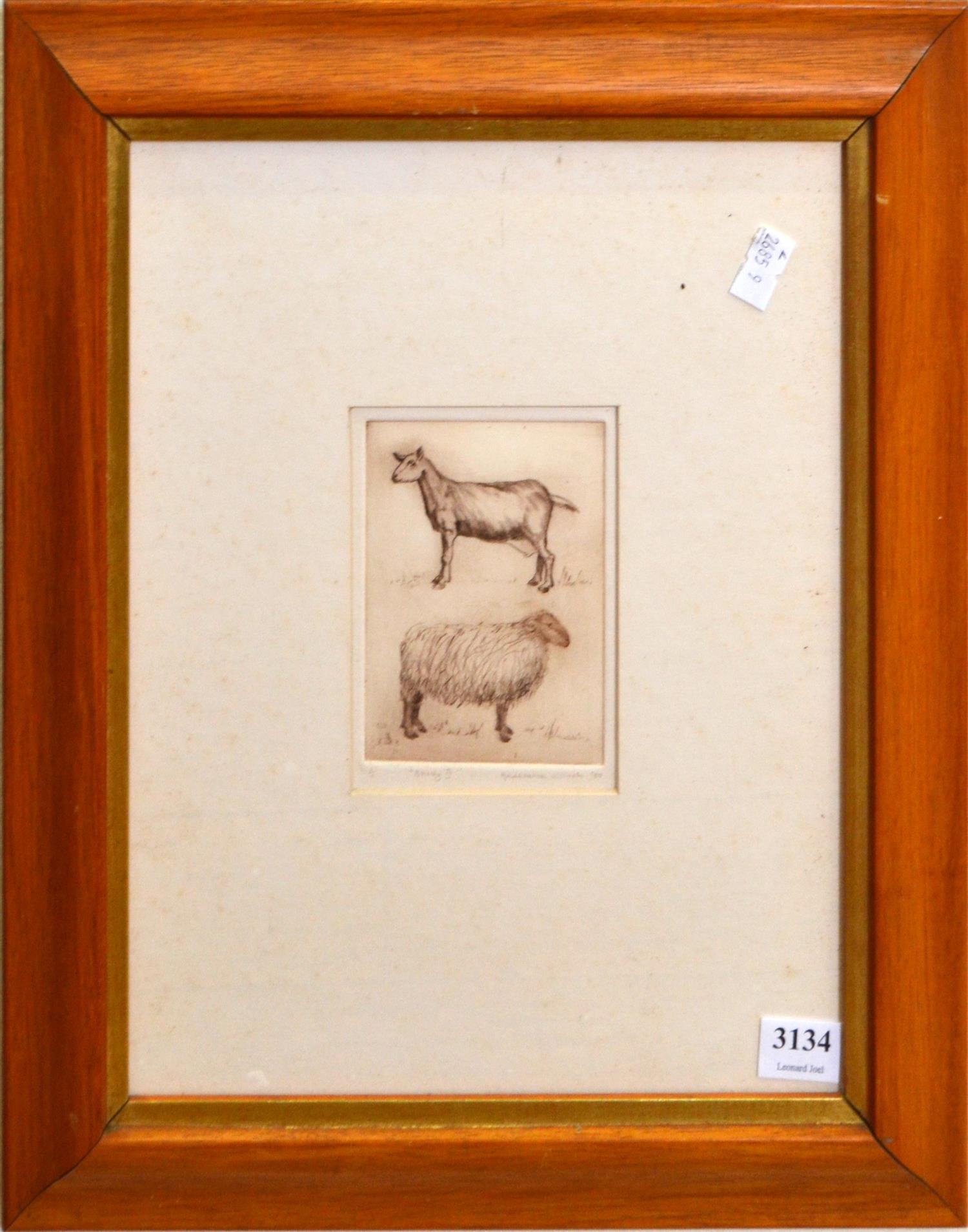 MADELEINE WINCH, FARM STUDY 2: SHEEP 1980, ETCHING 1/1, PLATE SIZE: 9.5 X 7.5CM, FRAME SIZE: 35 X 30CM, CONDITION: PRINT IN GOOD CONDITION WITH MINOR FOXING TO MATTING