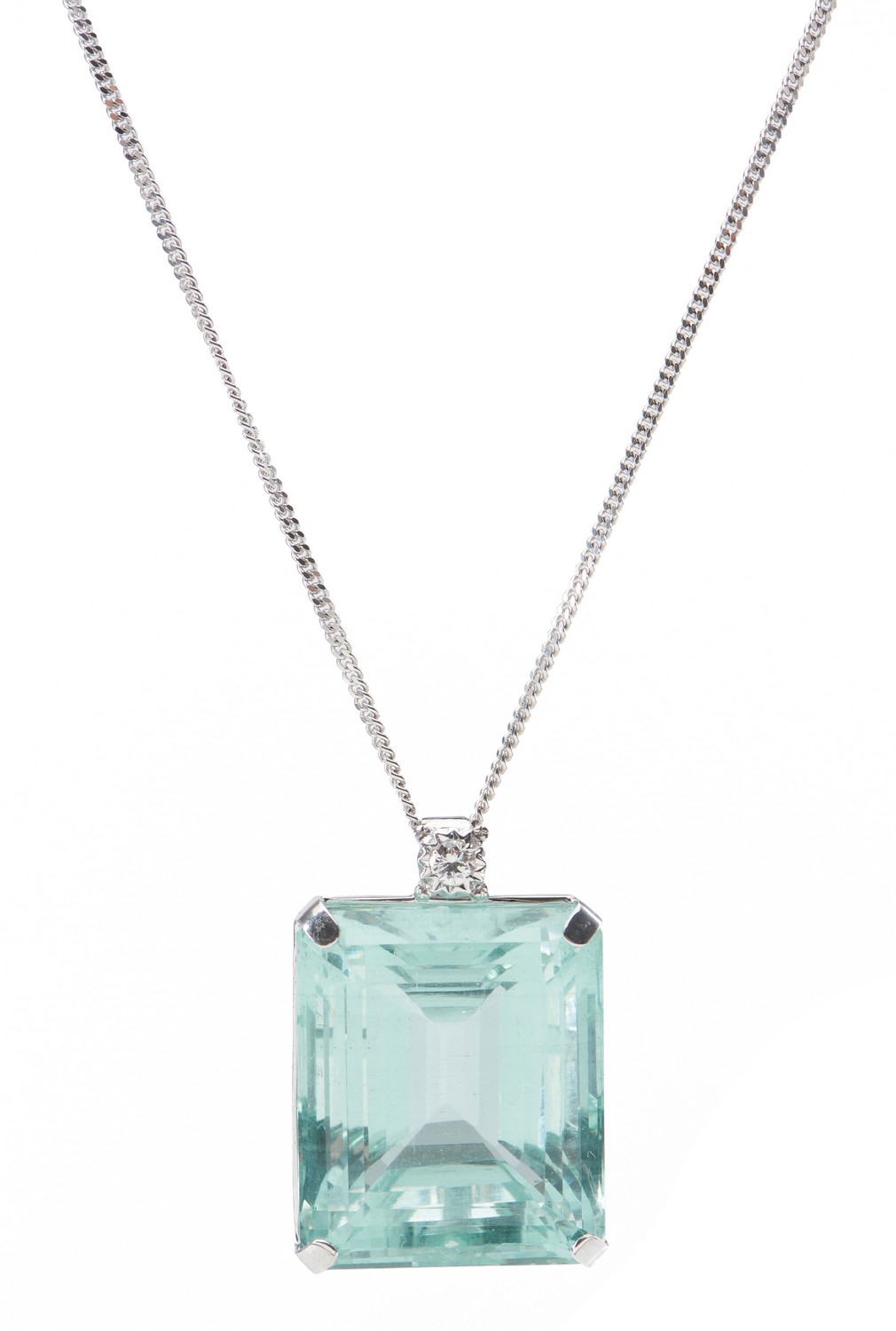 A KUNZITE AND DIAMOND PENDANT NECKLACE - Featuring a large pear cut kunzite weighing 172.78cts, in a double claw setting with a diam...