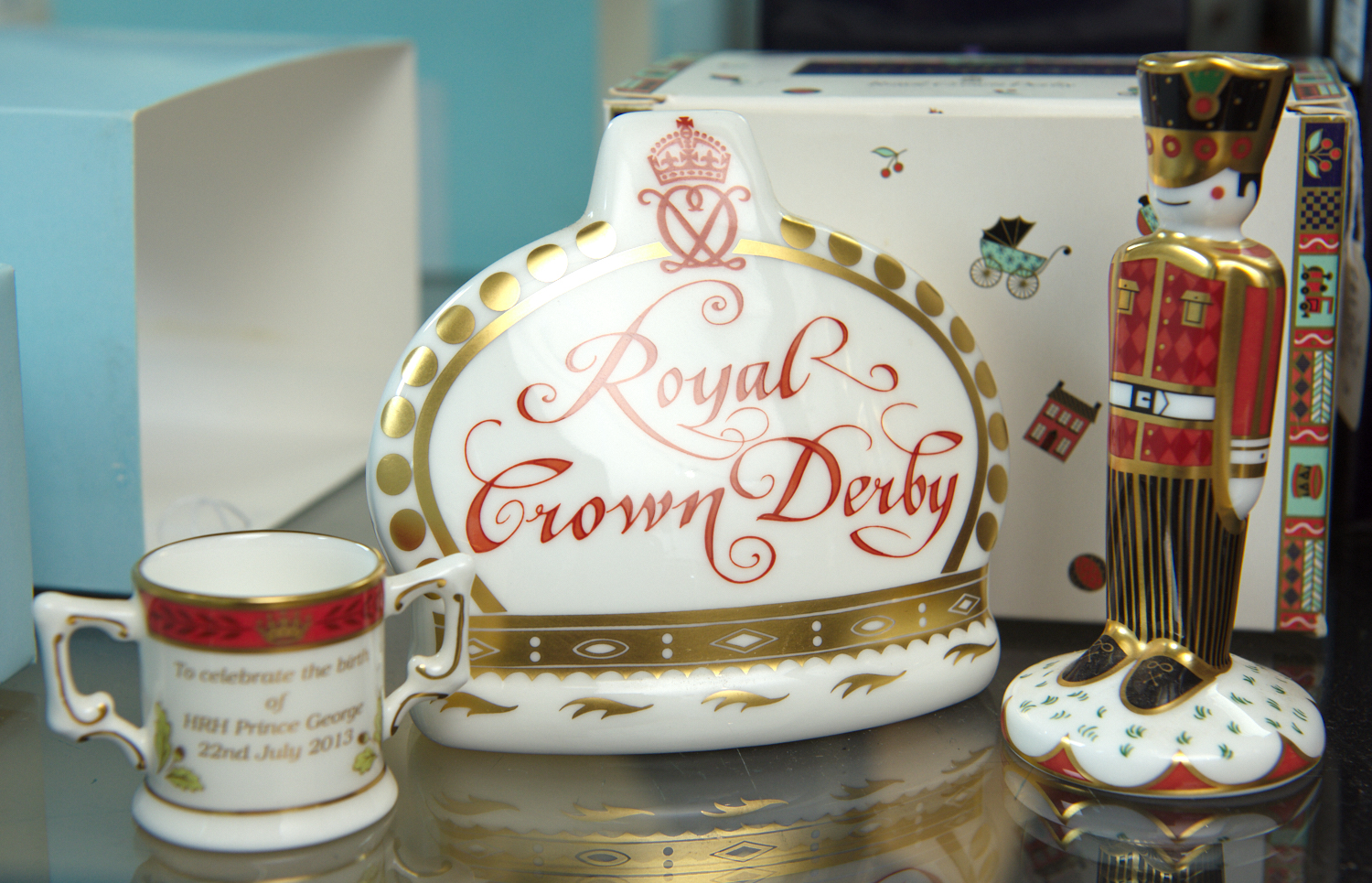 THREE ROYAL CROWN DERBY PAPERWEIGHTS, INCLUDING 'TREASURES OF CHILDHOOD - SOLDIER', ROYAL BABY MINIATURE LOVING CUP AND COLLECTORS' RED CROWN NAME STAND, BOXED