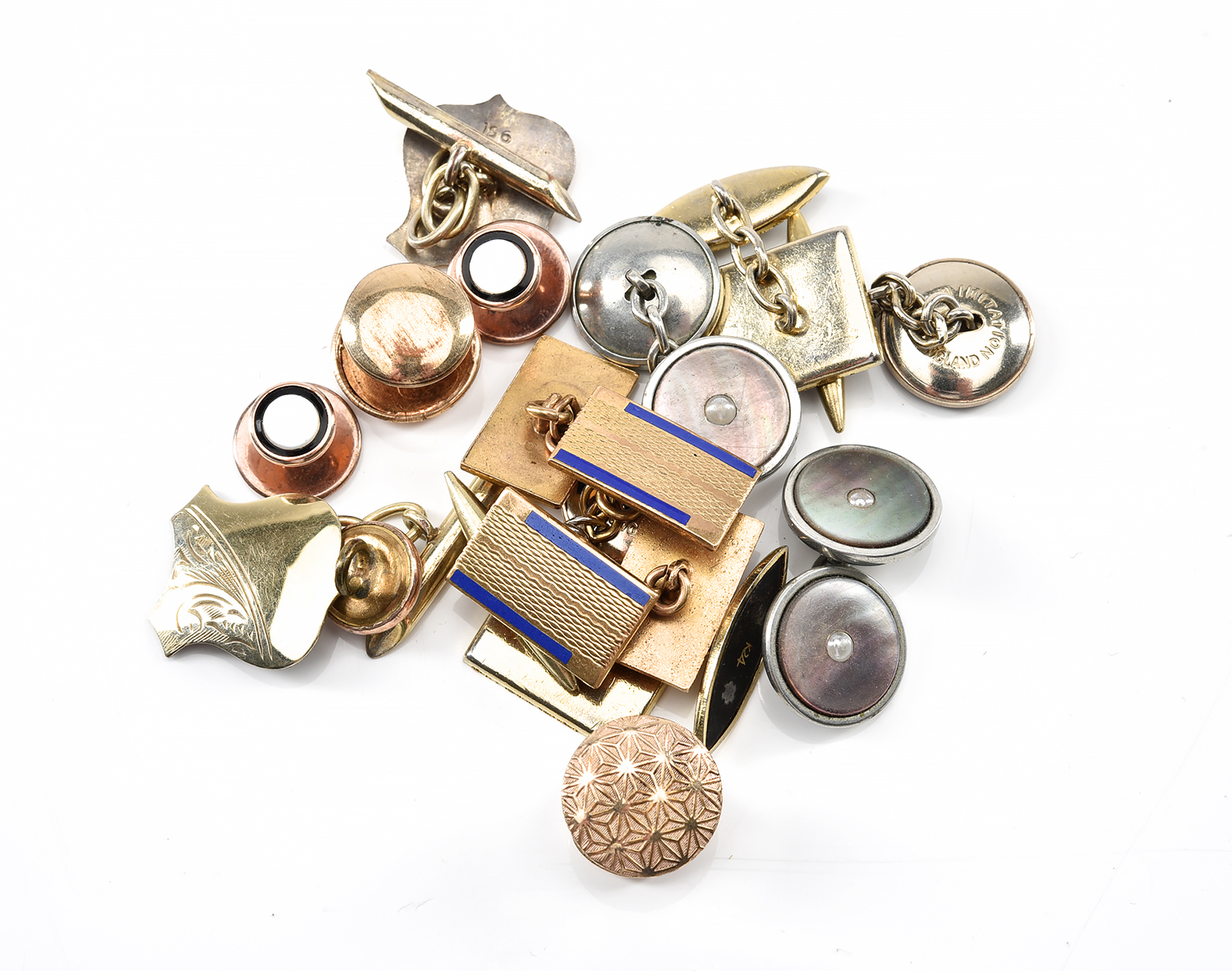 A COLLECTION OF CUFFLINKS AND STUDS INCLUDING SOME IN SILVER AND/OR GOLD LINED