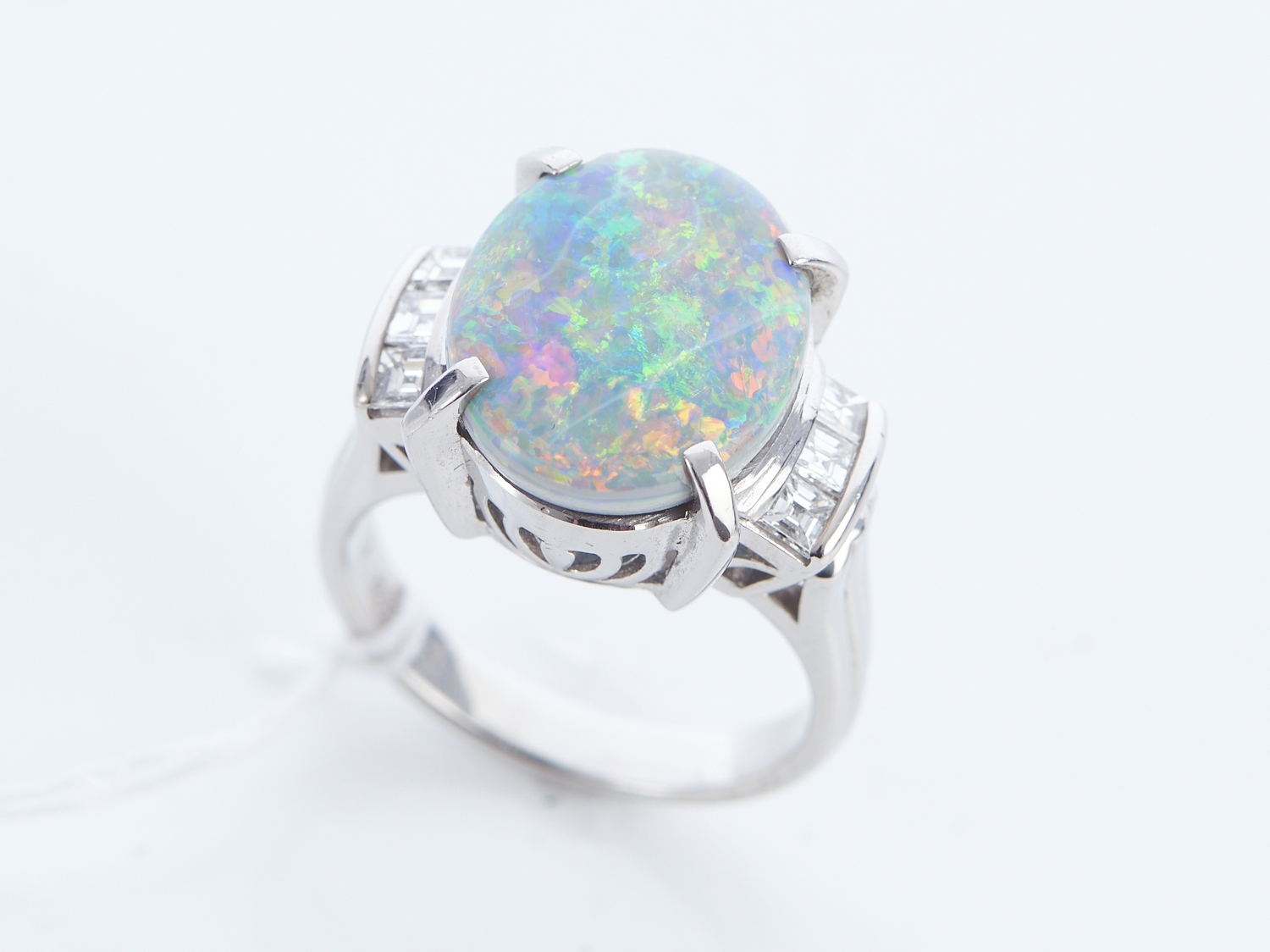 The ring presents in good condition overall. Some crazing to opal and chip to opal.