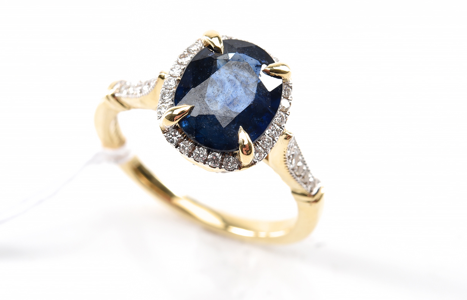 A JADEITE, YELLOW DIAMOND AND DIAMOND RING FEATURING A CABOCHON GREEN JADEITE OF 5.50CTS IN A SURROUND OF ROUND BRILLIANT CUT DIAMON...