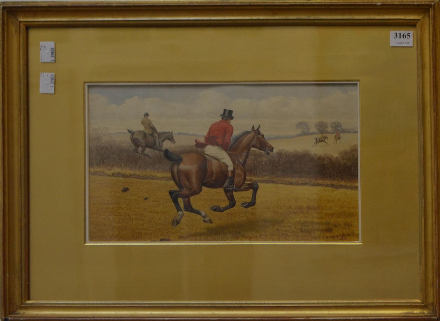 EDWARD STUART DOUGLAS, THE HUNT 1895, WATERCOLOUR, 18 X 30CM, FRAME SIZE: 37 X 49CM, CONDITION: LIGHT FADING CONSISTENT WITH AGE