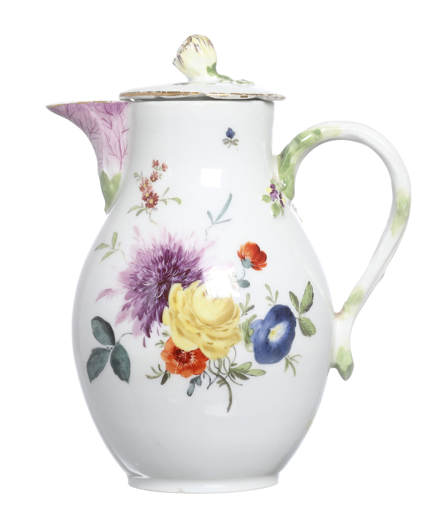 A MEISSEN CHOCOLATE POT AND COVER