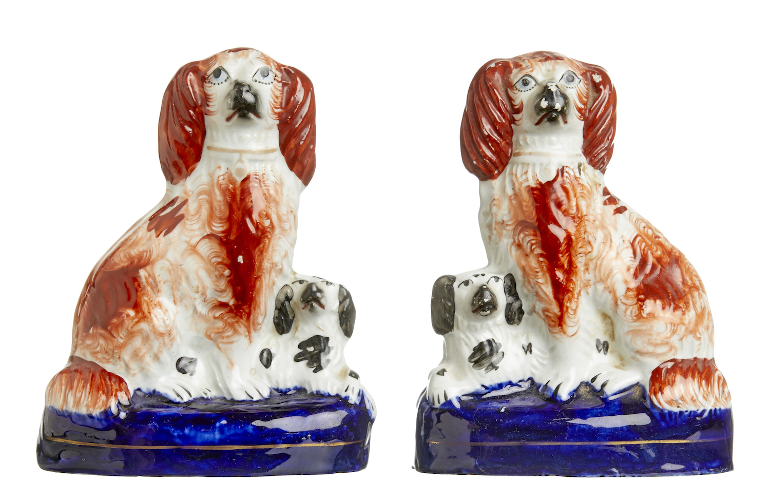 A PAIR OF SMALL STAFFORDSHIRE SPANIELS