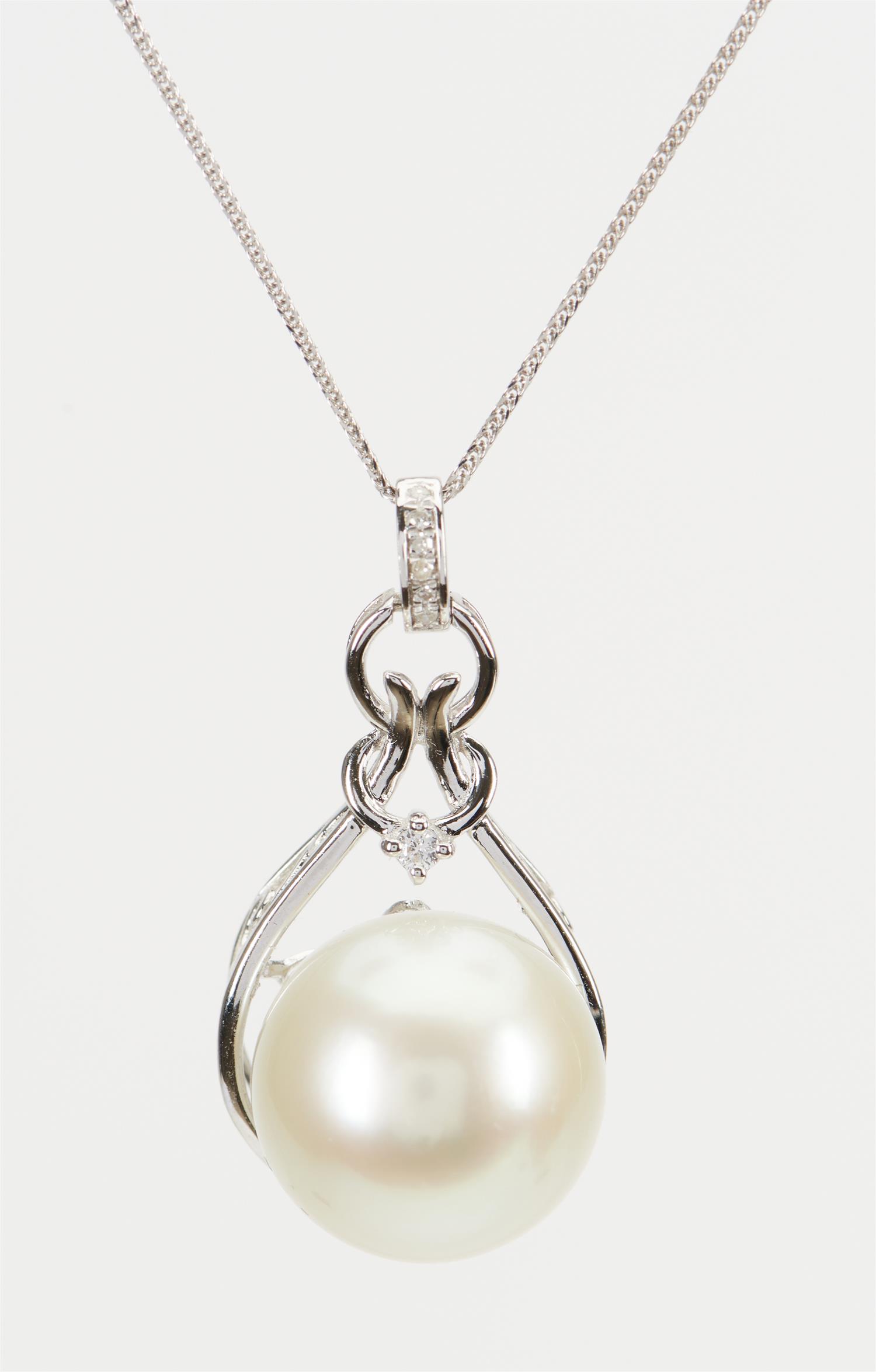 A SOUTH SEA PEARL, MORGANITE AND DIAMOND NECKLACE IN 18CT WHITE GOLD, FEATURING A CUSHION CUT MORGANITE OF 49.44CTS, THE ROUND PEARL...