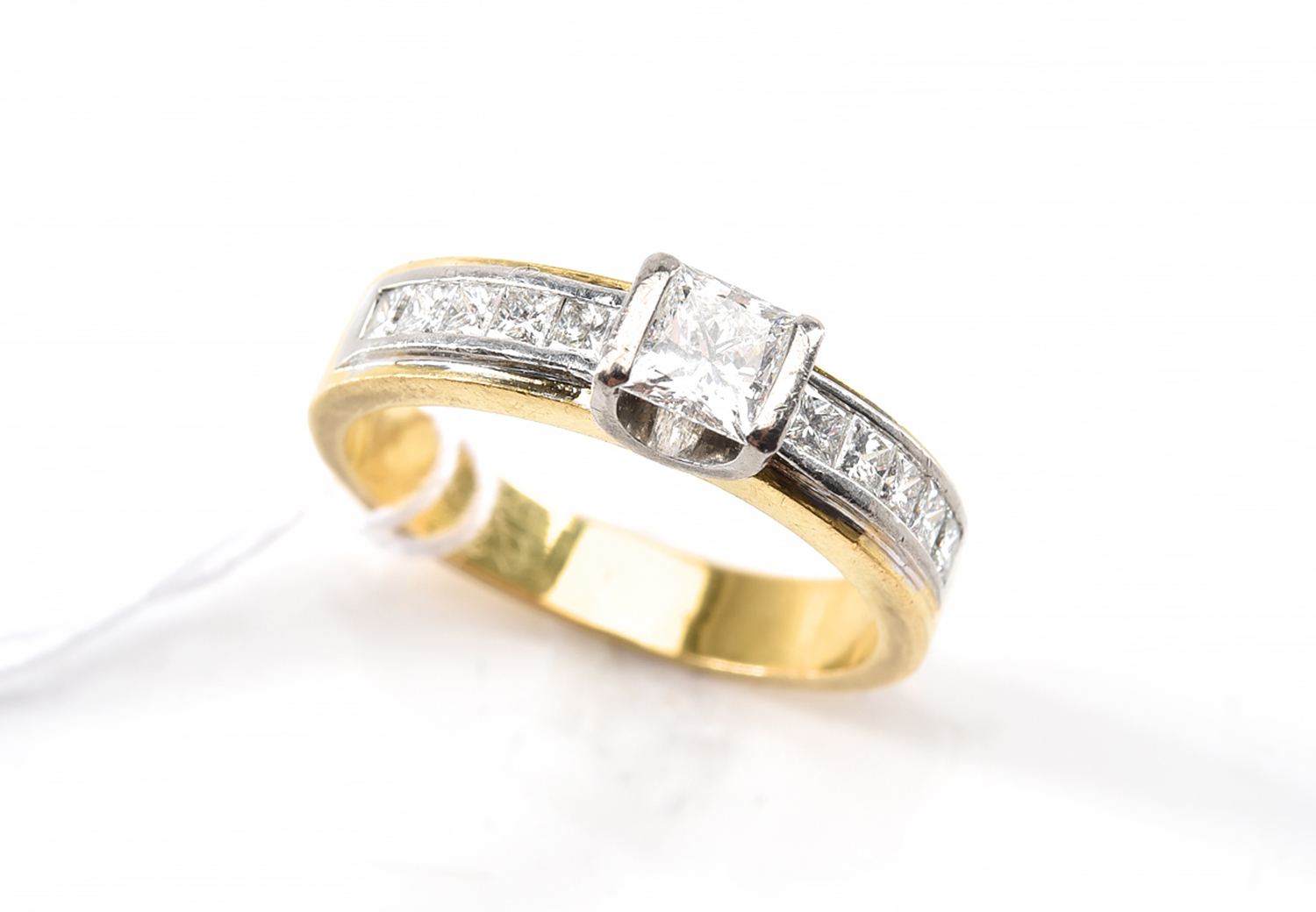 A DIAMOND RING IN TWO TONE 21CT GOLD, RING SIZE K, 5GMS