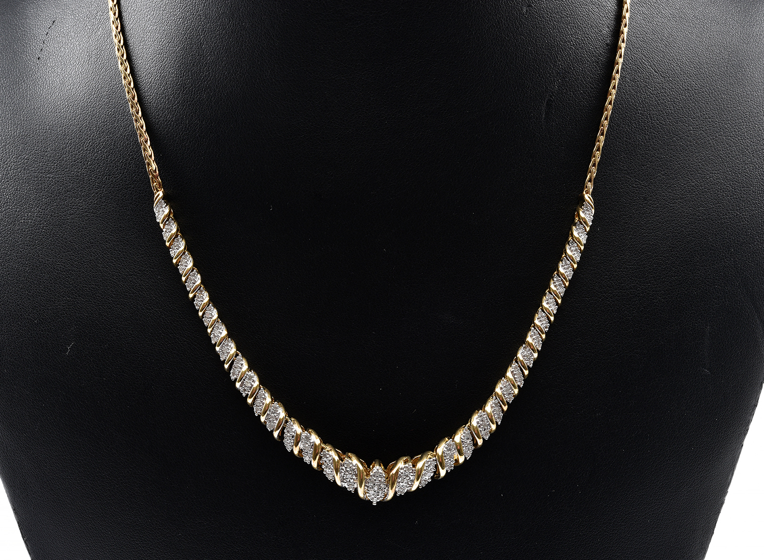 A DIAMOND SET NECKLACE IN SILVER GILT, TOTAL LENGTH 430MM