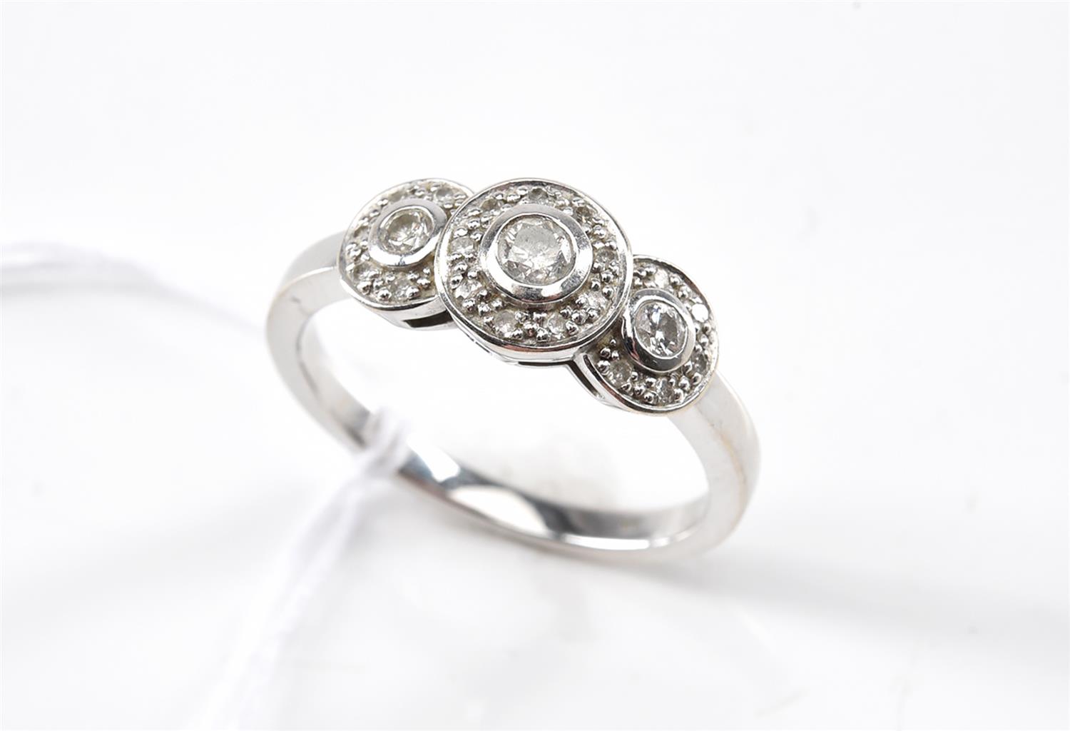 A DIAMOND CLUSTER RING IN 9CT WHITE GOLD, RING SIZE N, 3.3GMS