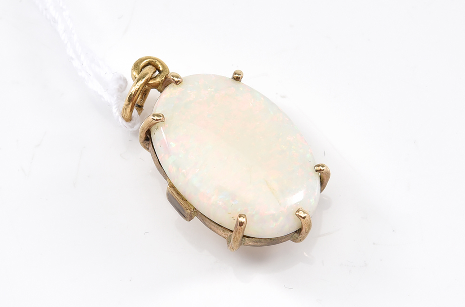A VINTAGE SOLID WHITE OPAL (17.6X13MM) PENDANT IN 9CT GOLD, 3GMS