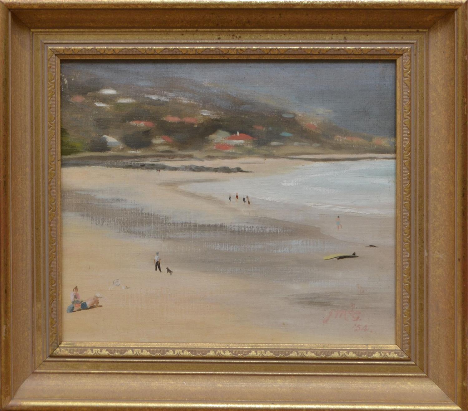JOYCE MCGRATH, SCENE WITH FIGURES 1954, OIL ON BOARD, 29 X 34CM, FRAME SIZE: 42 X 46CM CONDITION: WARPING TO CANVAS AND LIGHT SURFACE DUST