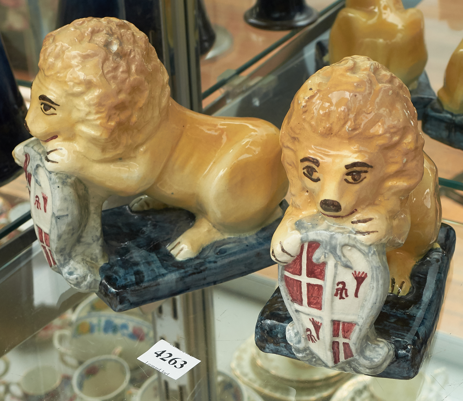 A PAIR MALTESE OF LION ORNAMENTS, EACH DEPICTING HOLDING HERALDIC SHIELDS