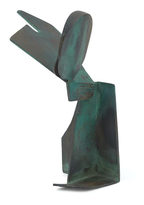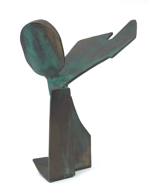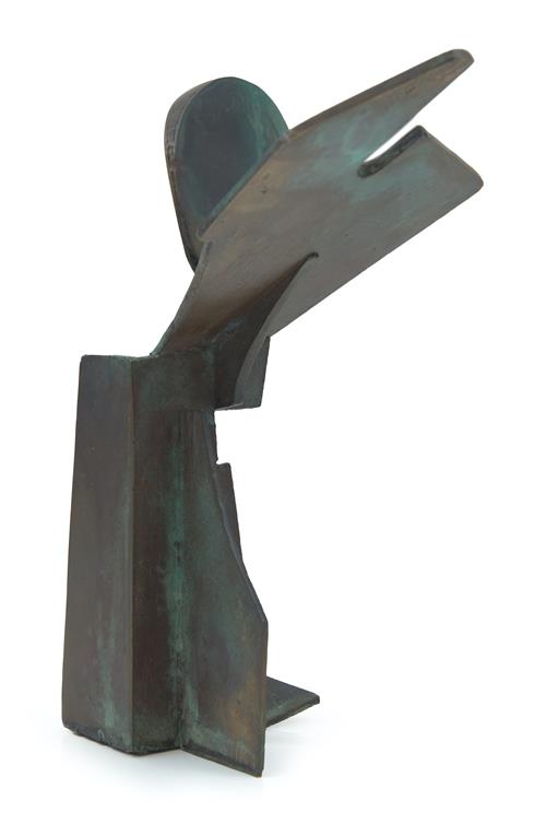 In the late 1950's King made the transition to bronze as her primary medium. A common career move for many sculptors in their careers, as this allowed them to produce large scale public commissions while also creating revenue by casting smaller editioned works for exhibitions and collectors. King somewhat personalised her method of production by working with flat shapes as her foundation. By cutting shapes out of paper, she was able to incorporate collage and assemblage into her practice while working towards her final product in metal.