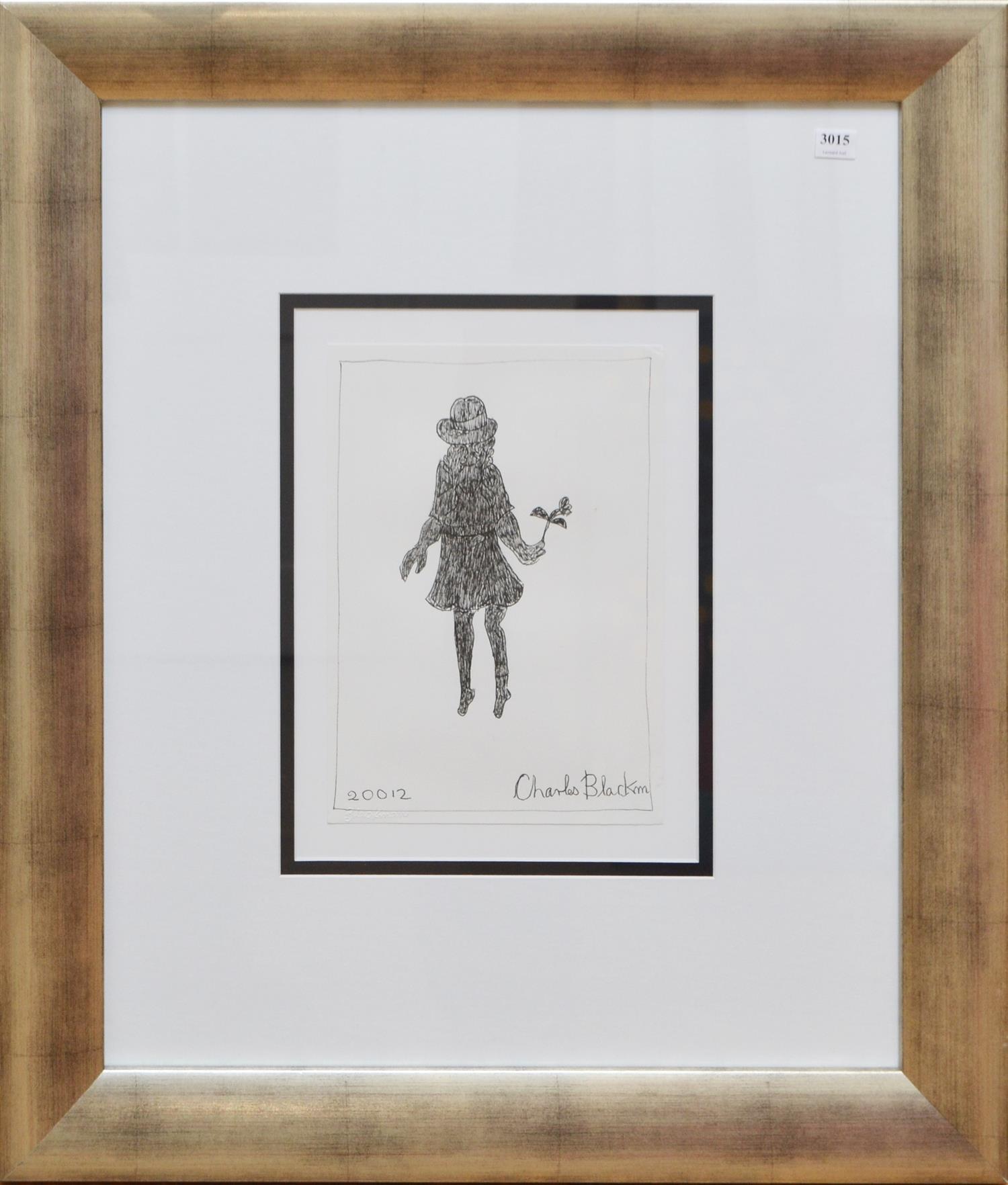 CHARLES BLACKMAN, SCHOOLGIRL WITH FLOWER 2012, INK ON PAPER, 30 X 21CM, FRAME SIZE: 73 X 62CM