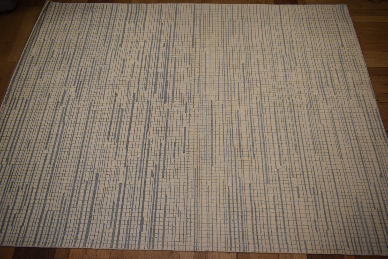 A MODERN LOOPED-PILE HANDLOOM WEAVE CARPET WITH LATTICE PATTERNS IN IVORY & LIGHT BLUE. 100% TENCIL SILKY TEXTURE. BRAND-NEW & IN SUPERB CONDITION. SIZE: 360X270CM, ORIGIN: INDIA – RRP: $2,800