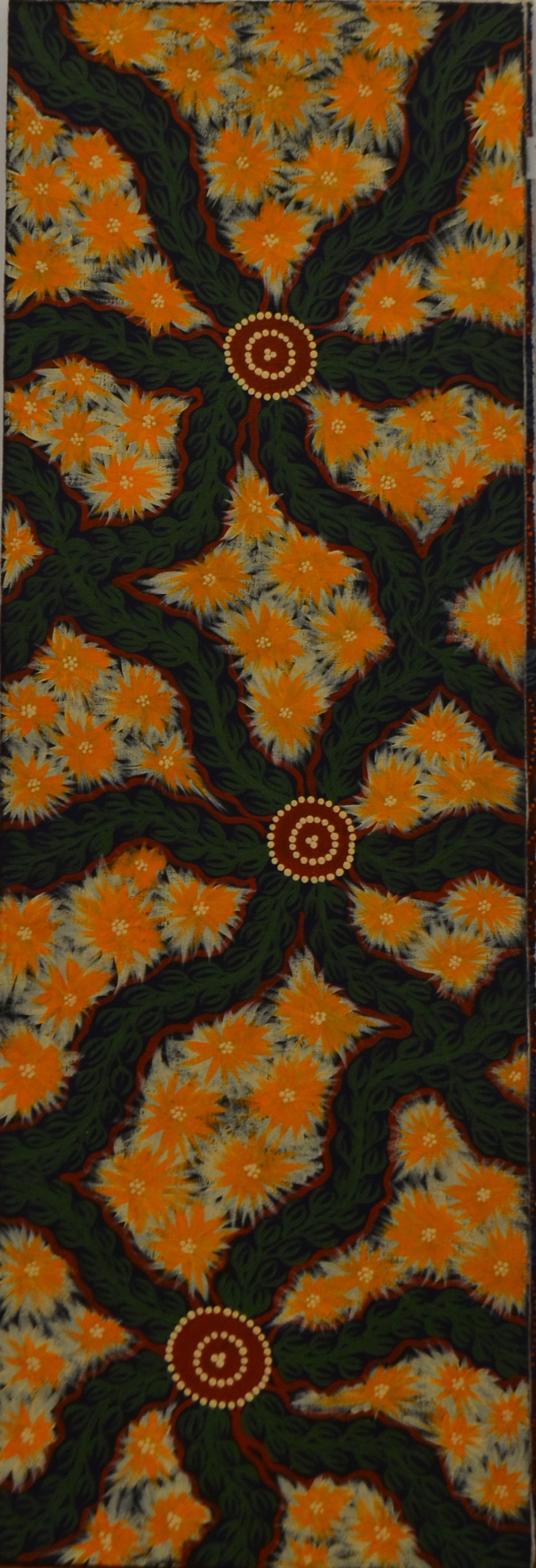 COLLEEN WALLACE, WILD BUSH YAM FLOWERS, ACRYLIC ON LINEN, ARTIST NAME AND CAT NO VERSO, 91 X 31CM, CONDITION: VERY GOOD