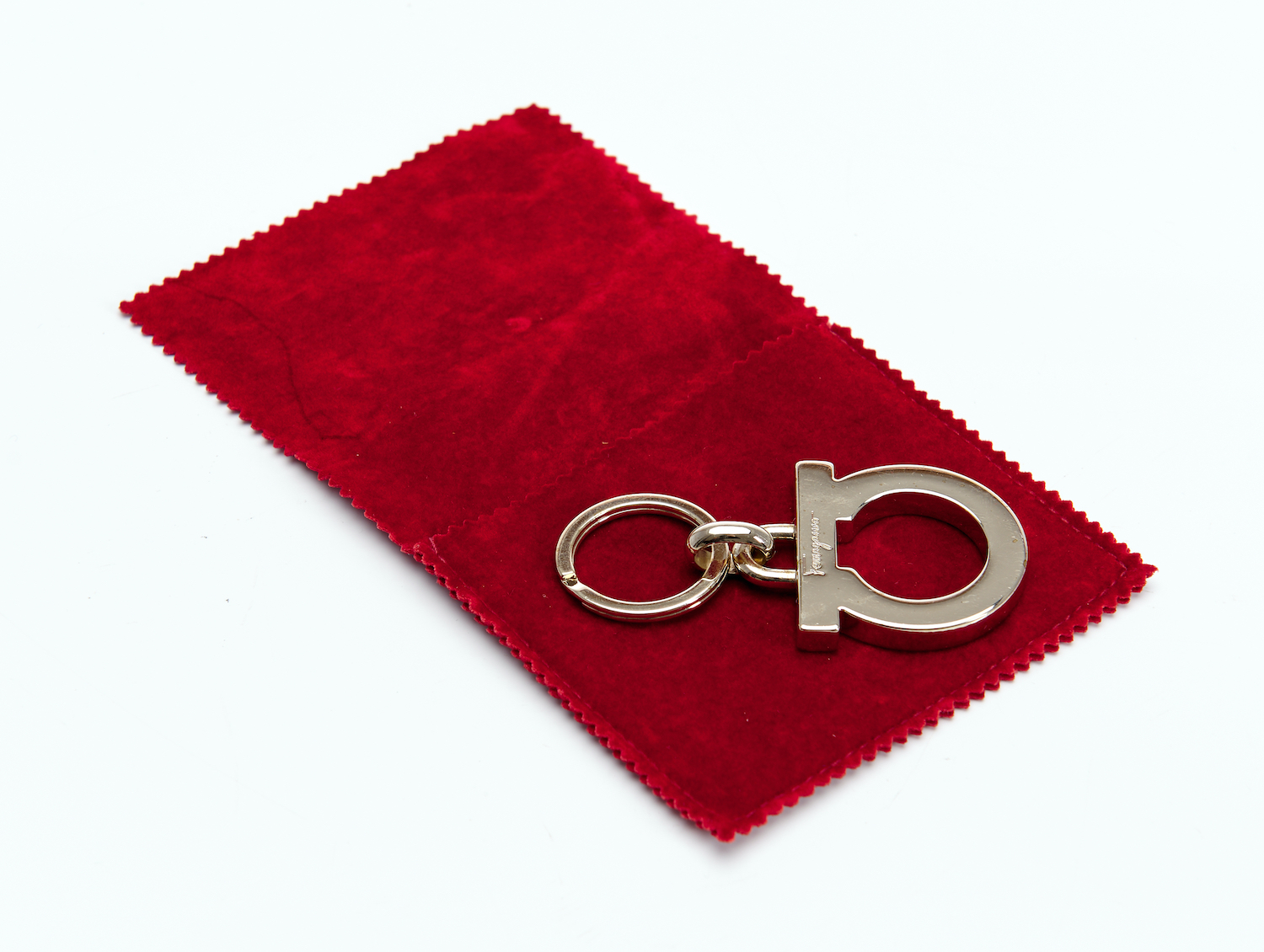 Of Gancini design in silver metal, width 4cm, total length 8cm.