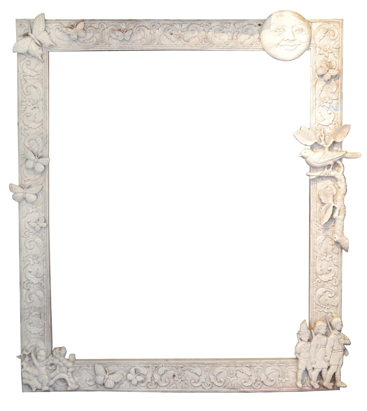 A HAND CARVED DAVID BROMLEY FRAME, 218 X 200CM (IRREGULAR), CONDITION: SOME PARTS OF THE FRAME ARE MISSING, TOP OF BOY'S SWORD LOWER RIGHT CORNER, TOP ANTENNA OF BUTTERFLY, SOME CRACKS TO WOOD OVERALL FAULTS INTEGRAL TO MEDIUM. THIS WORK MUST BE REMOVED BY PROFESSIONAL CARRIERS, LEONARD JOEL STAFF CANNOT MOVE THIS ITEM