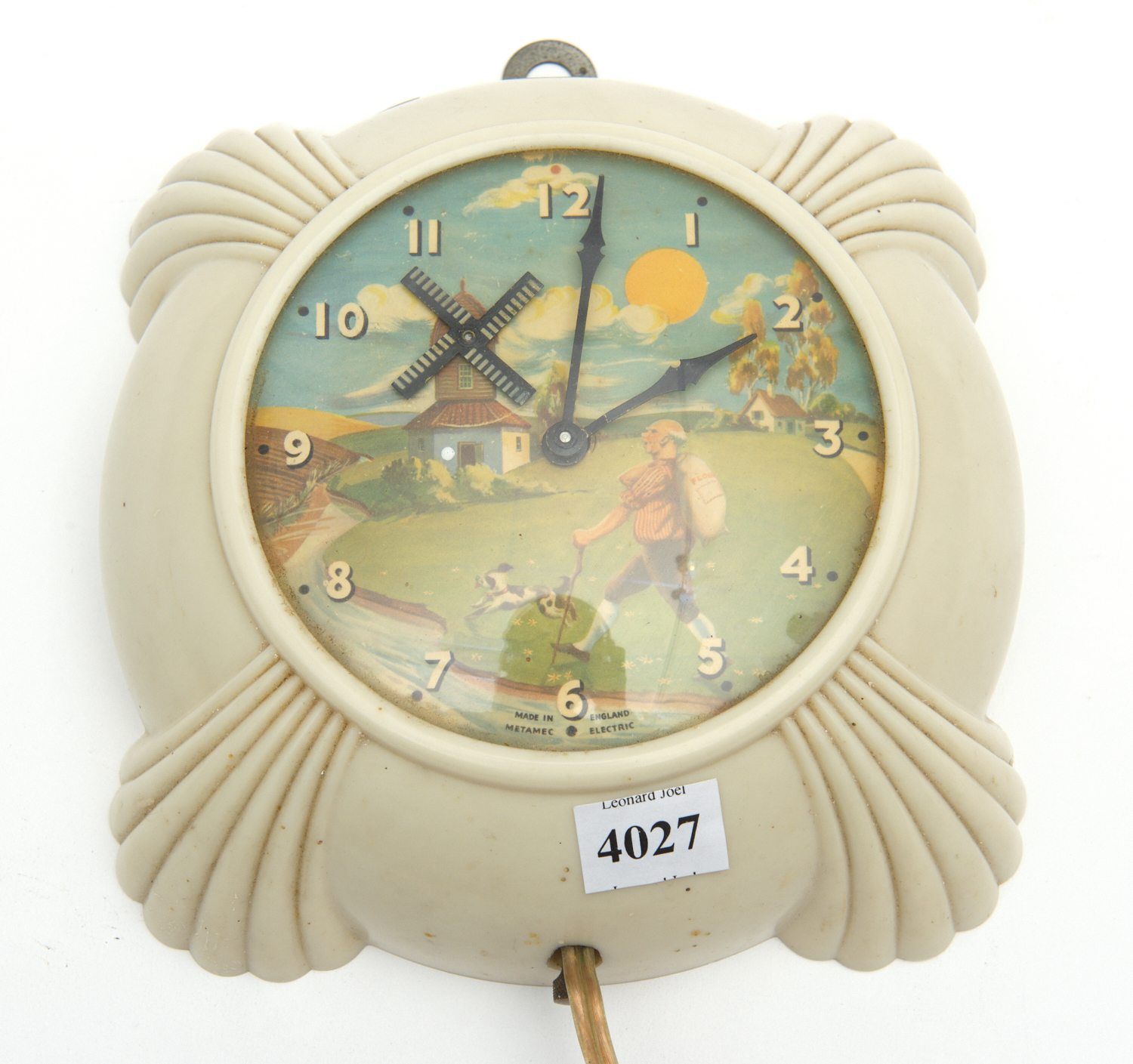 A MEMATEC ELECTRIC WALL CLOCK WITH A BAKELITE BODY, 17 CM WIDE (UNTESTED)
