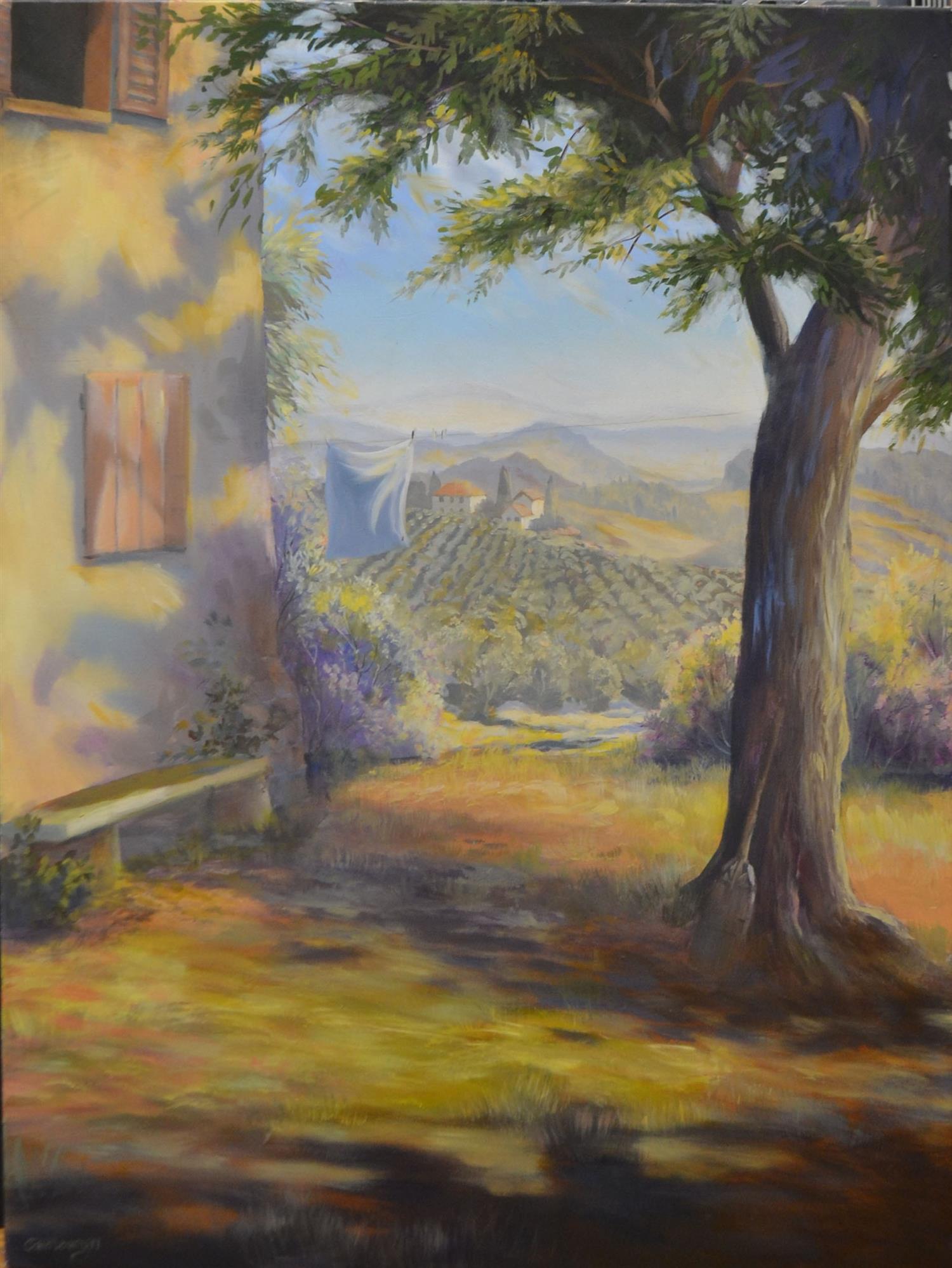 JOHN LAWRY, LANDSCAPE, OIL ON CANVAS, 121 X 90CM, STRETCHED AND READY TO HANG, CONDITION: PAINT LOSS UPPER RIGHT, OTHERWISE GOOD CONDITION