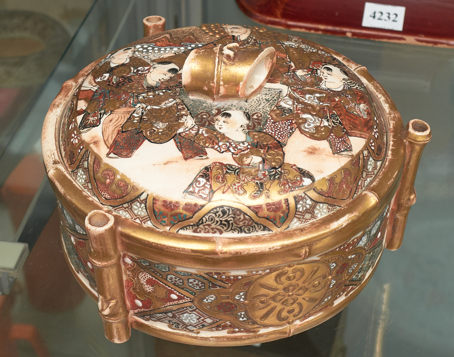 Lid has hairline crack, possibly repaired