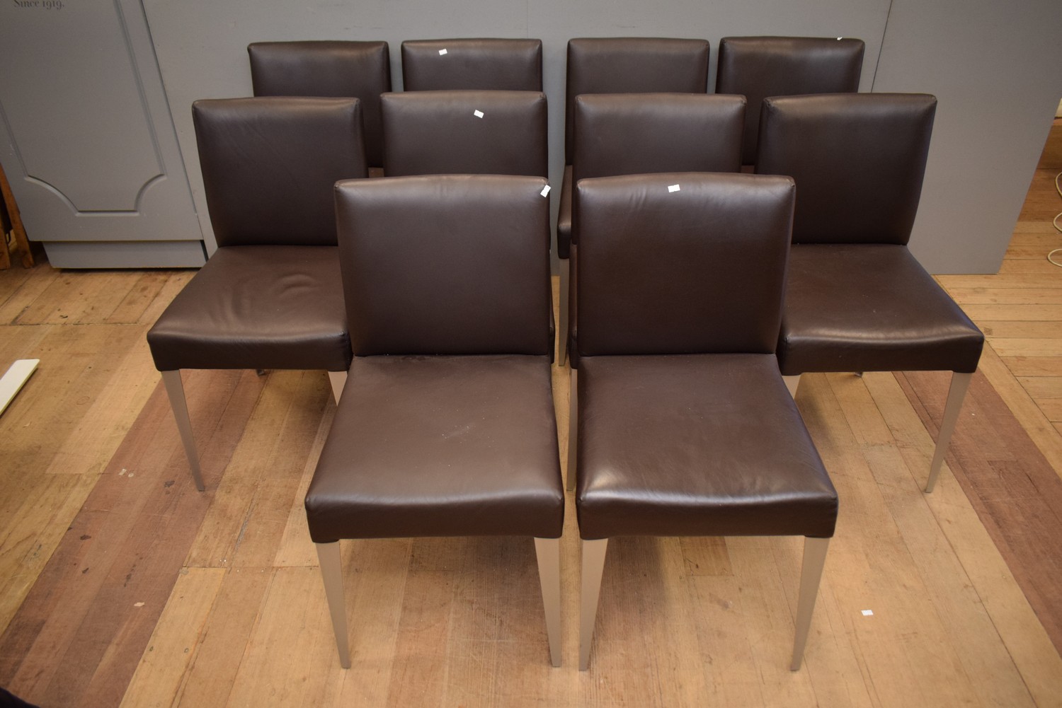 A SET OF TEN CONTEMPORARY LEATHER DINING CHAIRS (A/F) (85H X 42W X 50D CM)