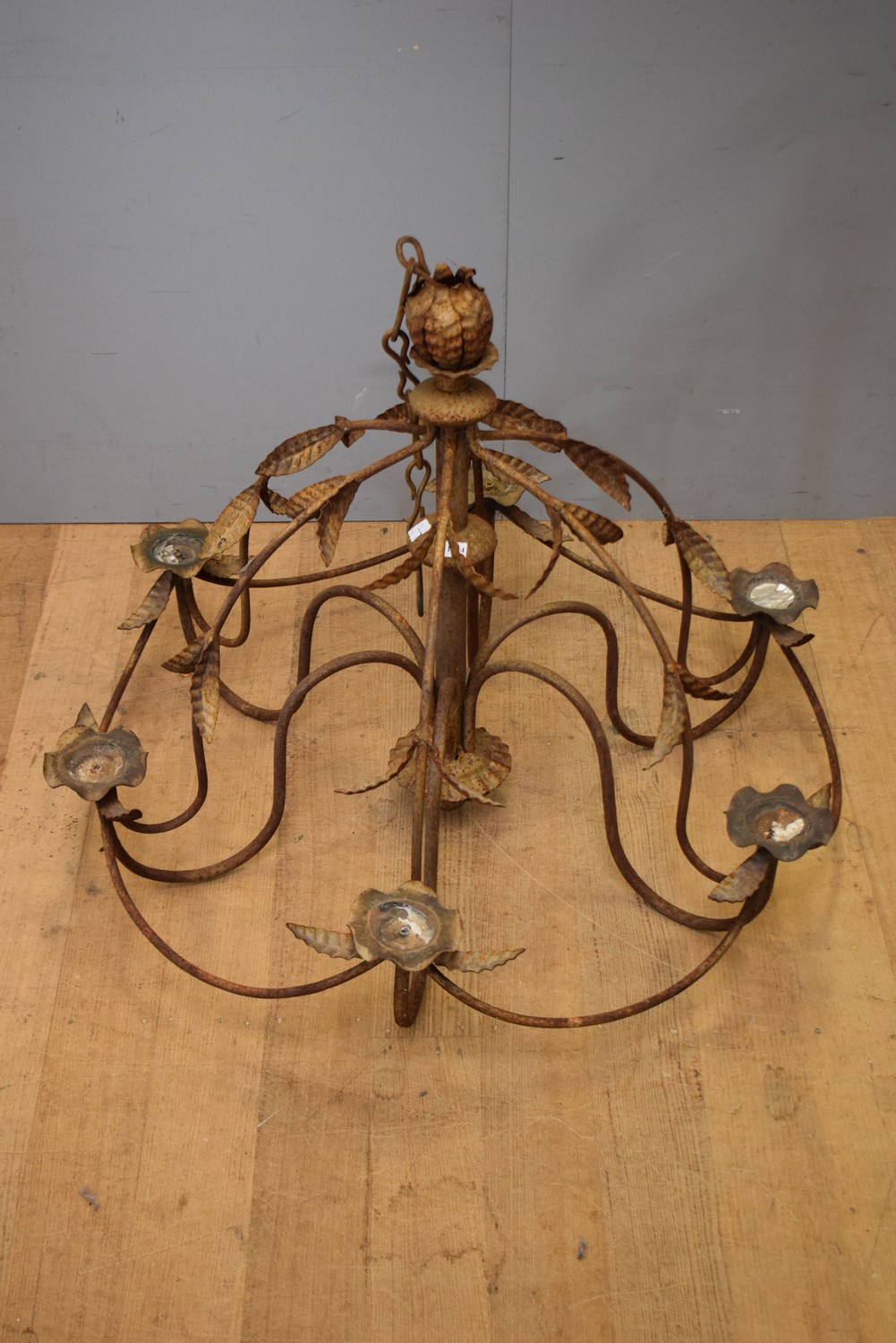 AN IRON FLORAL MOTIF CHANDELIER (NOT WIRED) (70H X 90W CM)