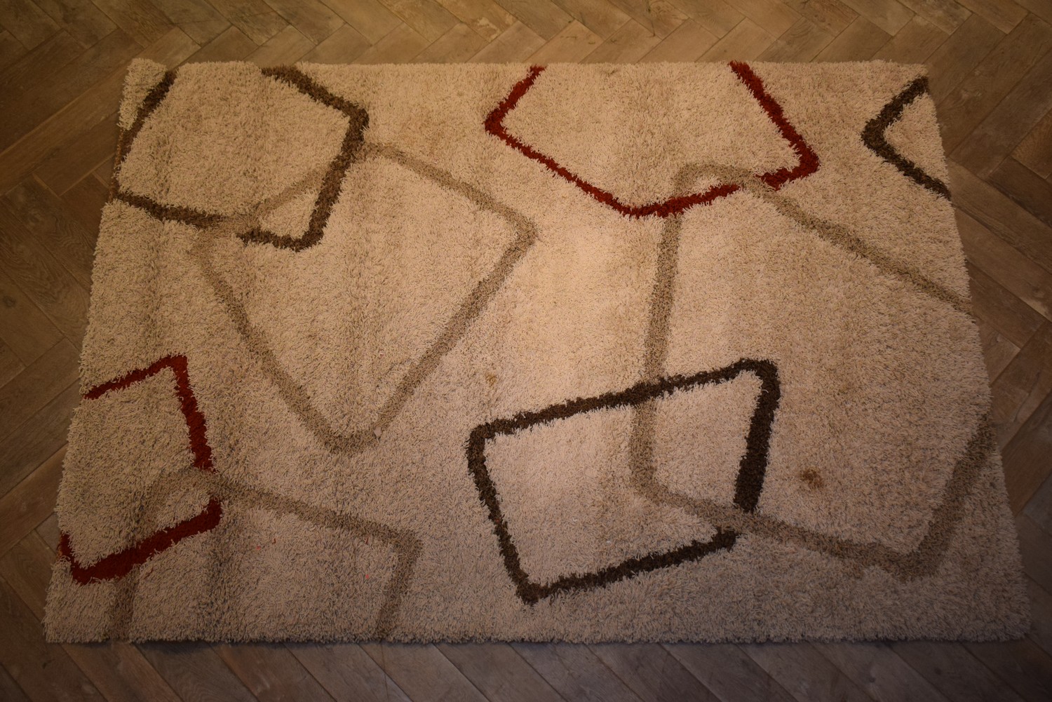 A MID-CENTURY STYLE SHAG PILE RUG (230L x 150W CM)