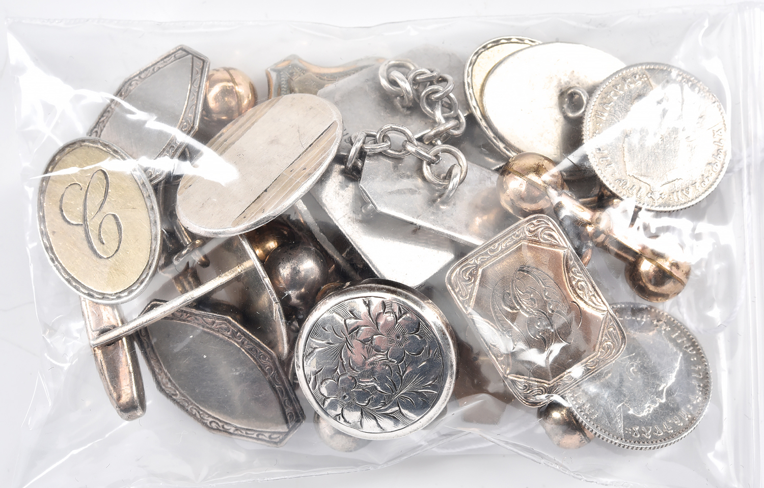 A COLLECTION OF ANTIQUE AND VINTAGE CUFFLINKS IN STERLING SILVER