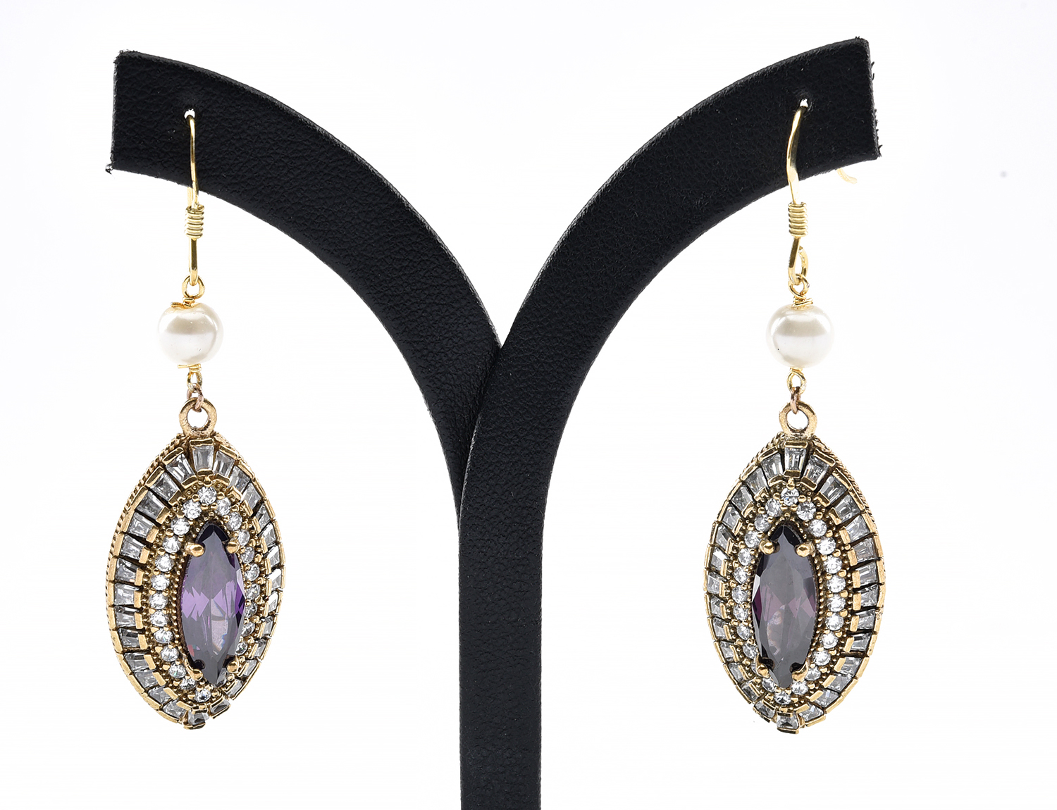 A PAIR OF PASTE SET EARRINGS IN SILVER GILT
