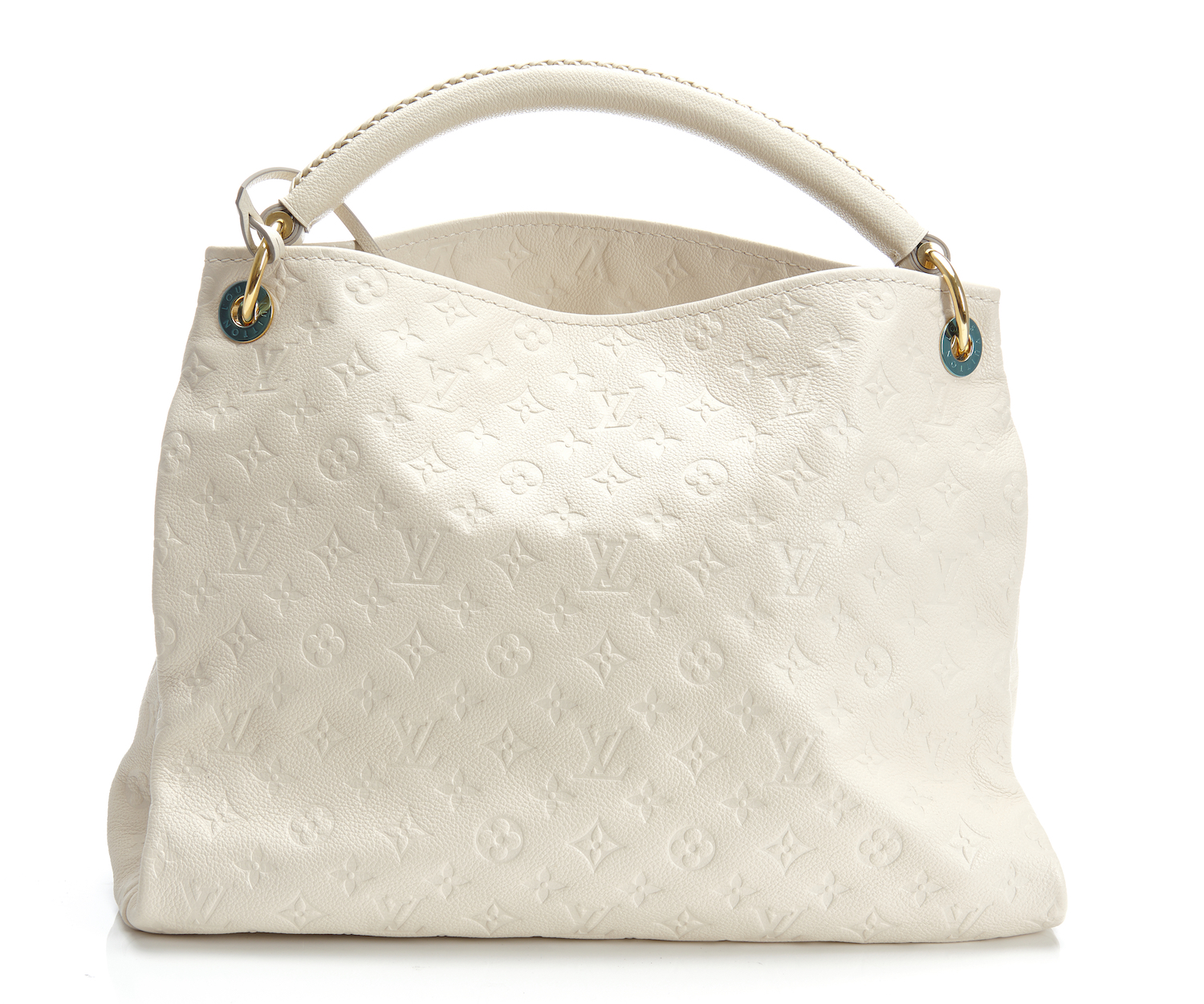 Styled in cream Empriente leather with gold metal hardware, 40 x 34 x 18.5cm.
