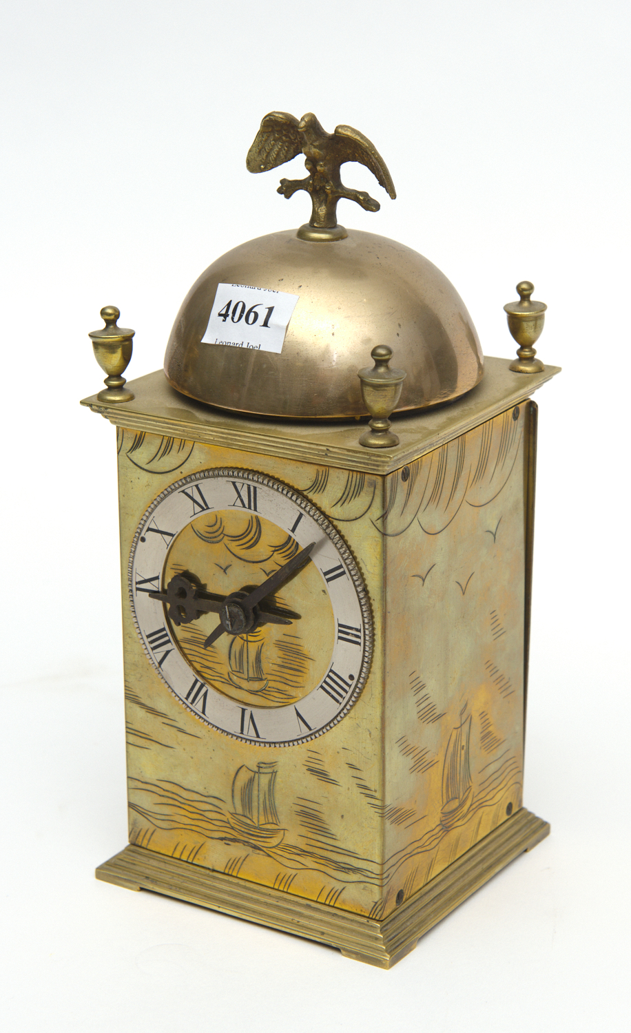 A LATE 19TH CENTURY SWISS BRASS CASED LANTERN CLOCK, BY BUREN, WITH KEY, 22 CM HIGH