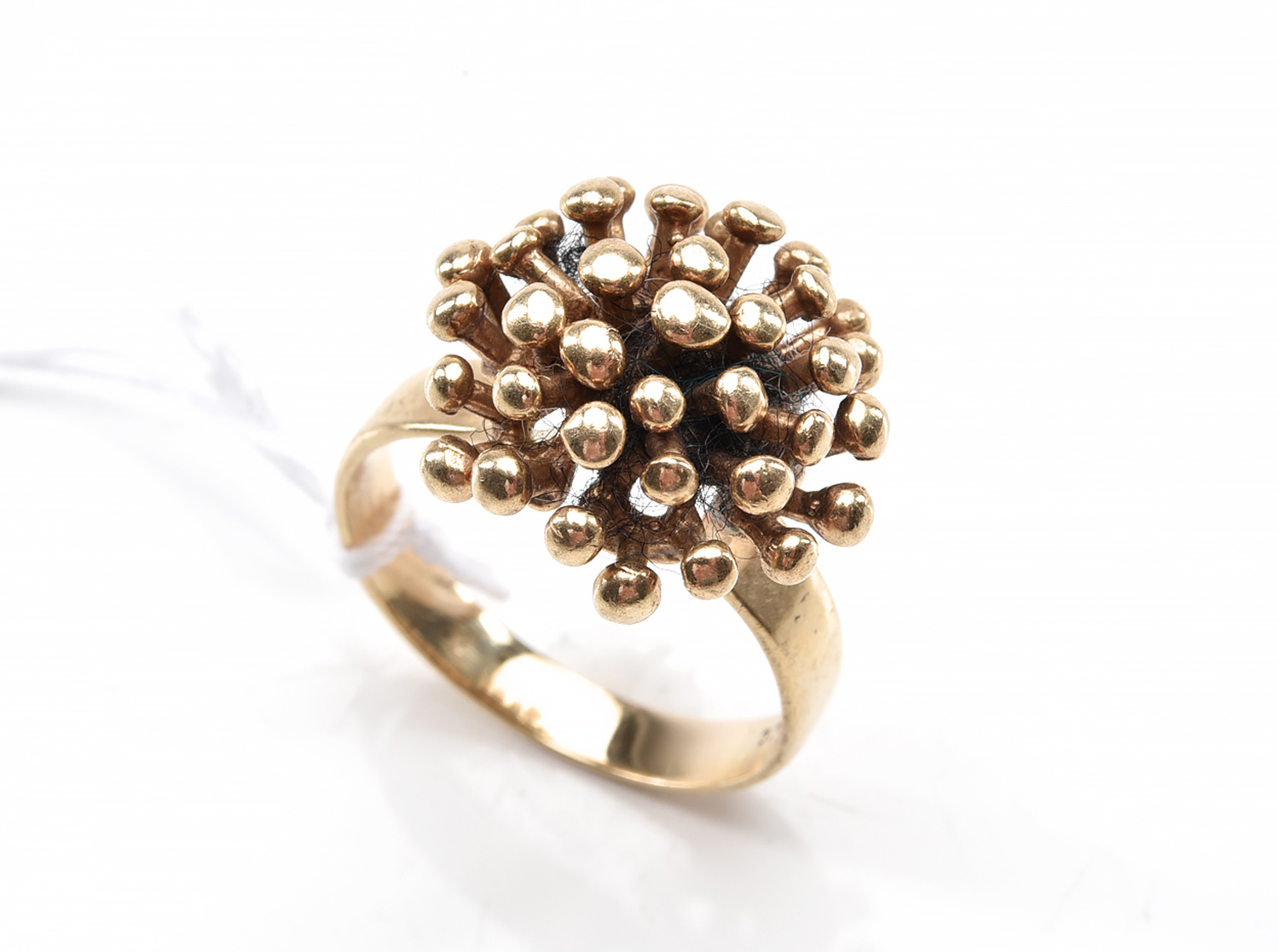 A HAND CRAFTED DRESS RING IN 9CT GOLD, 6.15GMS, SIZE Q