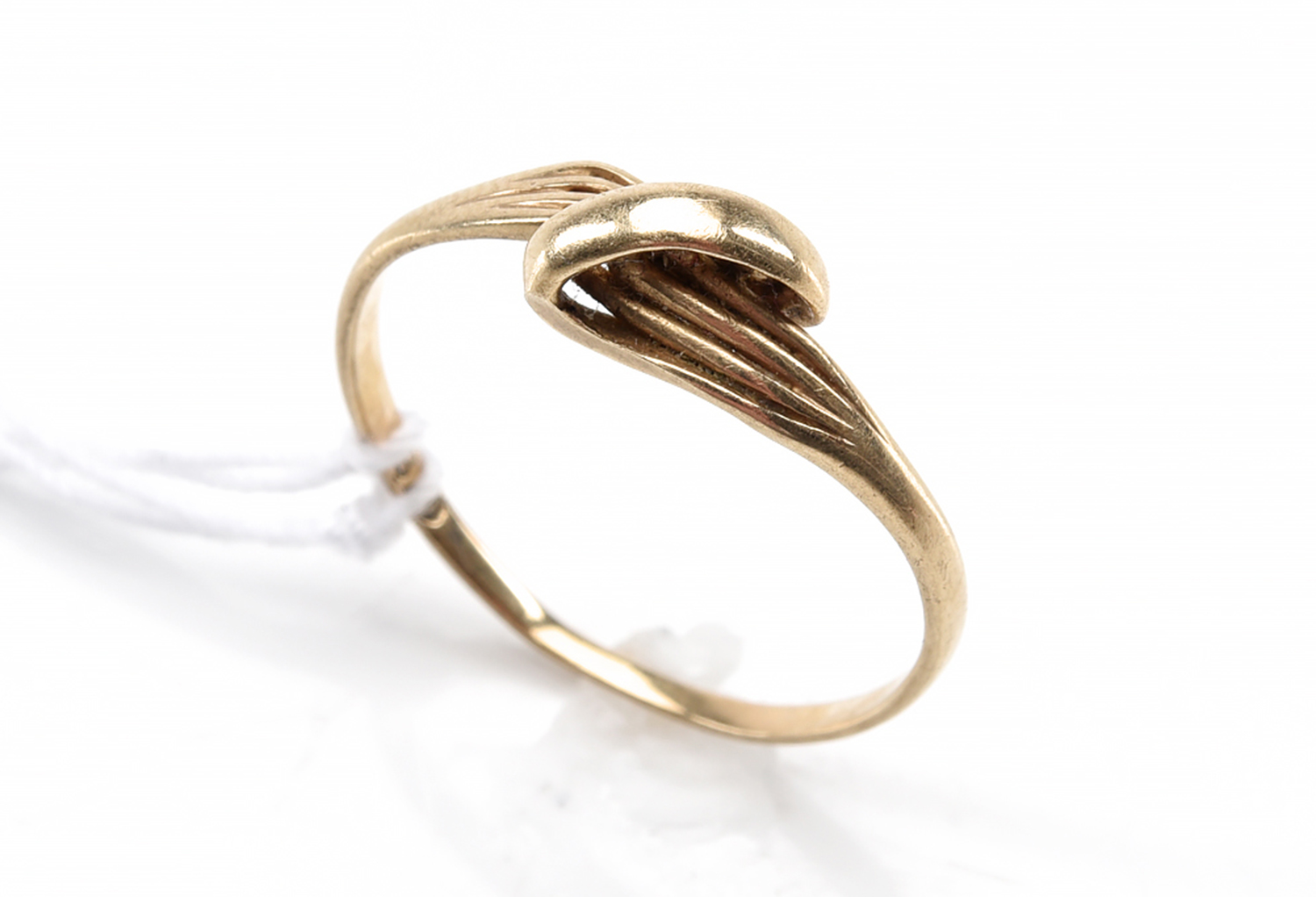 A FINE CROSSOVER STYLE RING IN 9CT GOLD, 1.06GMS, SIZE O