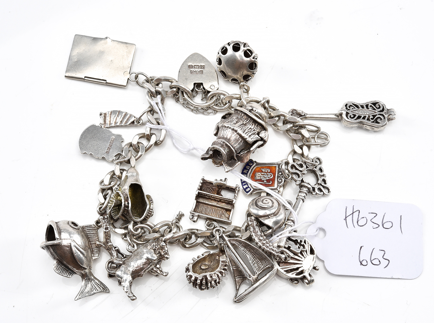 A CHARM BRACELET IN STERLING SILVER, HALLMARKED BIRMINGHAM