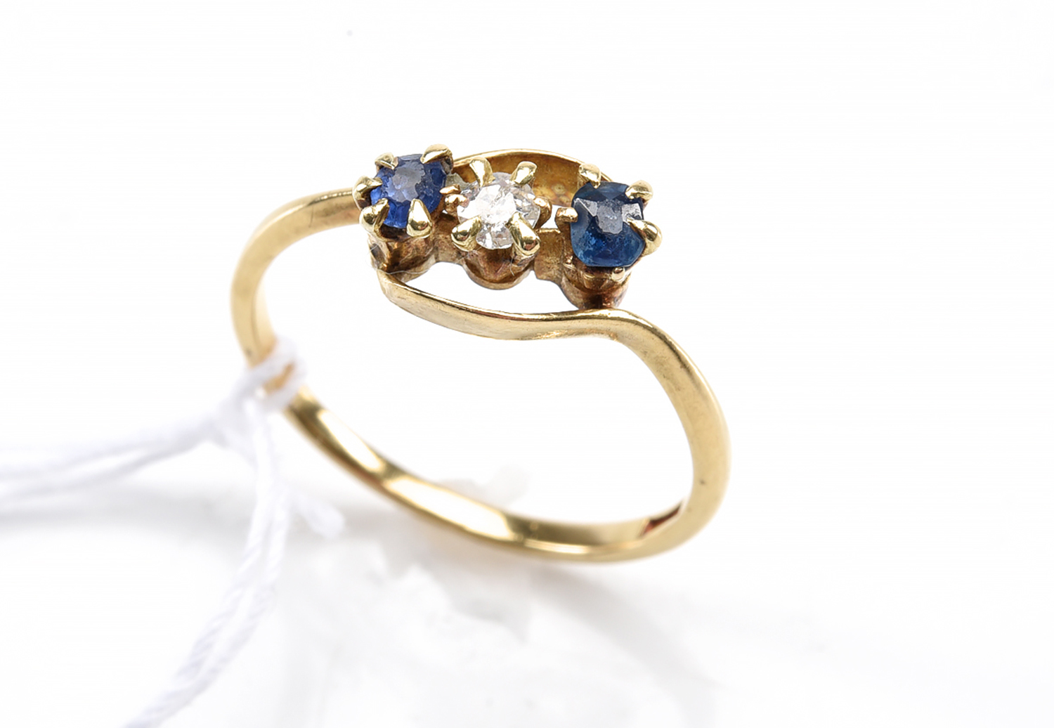 AN ANTIQUE OLD CUT SAPPHIRE AND DIAMOND RING IN 18CT GOLD, SIZE M, 2GMS